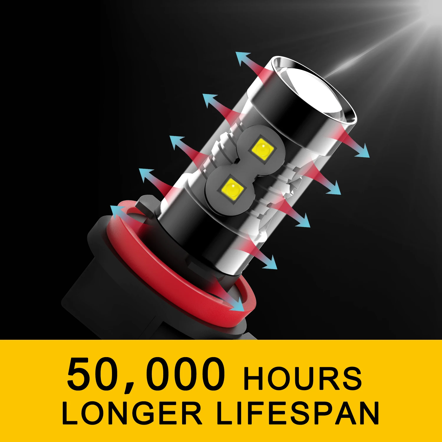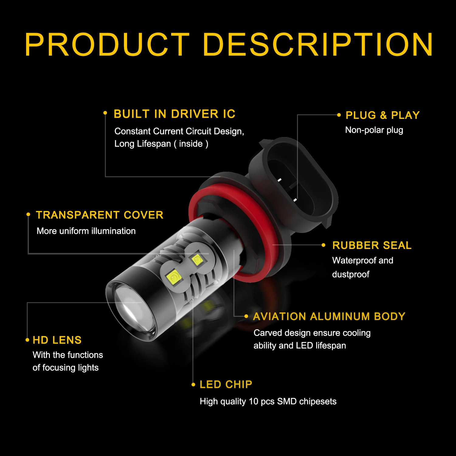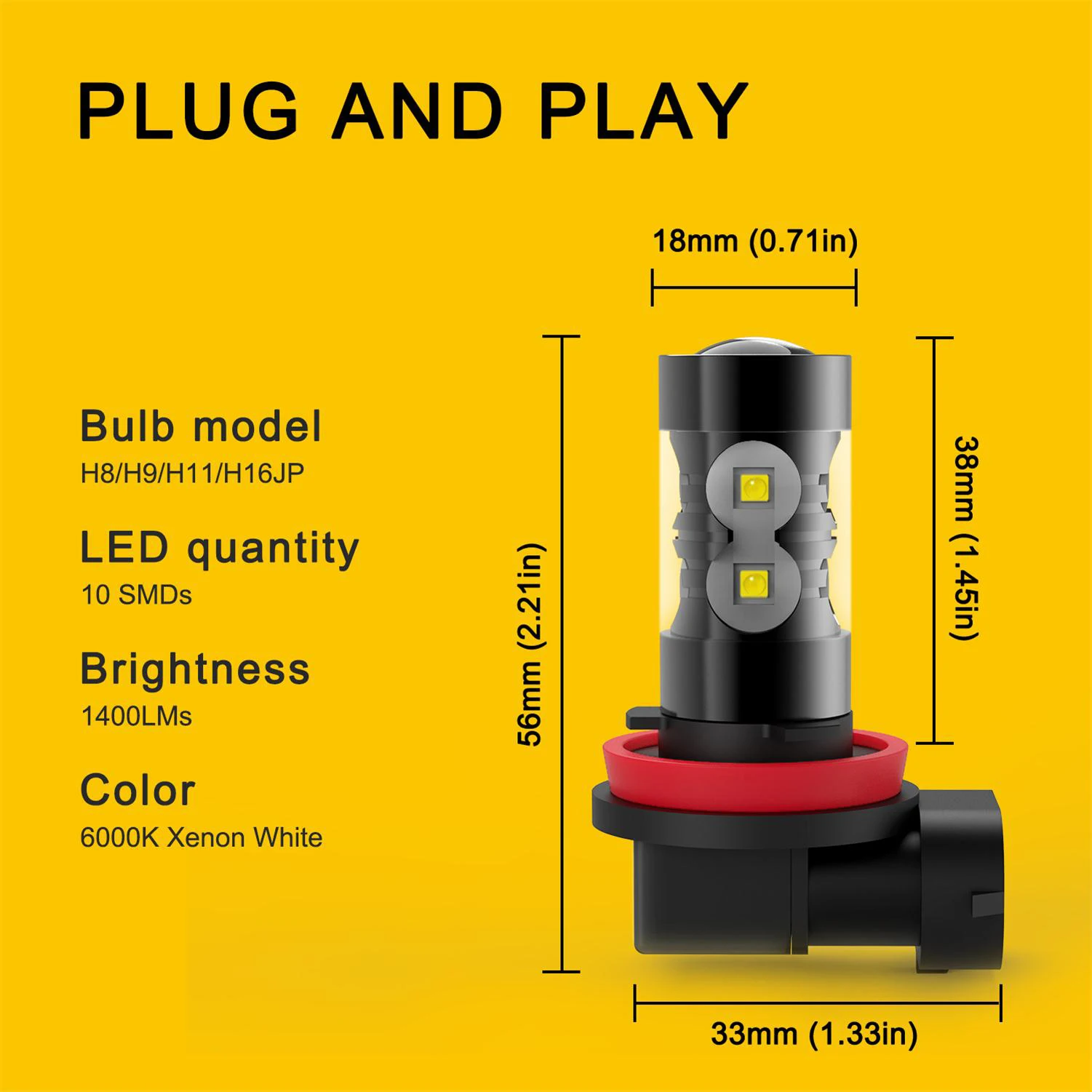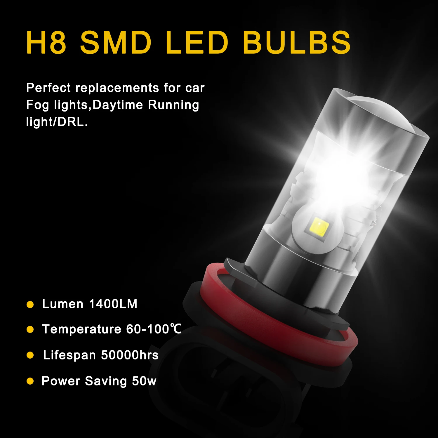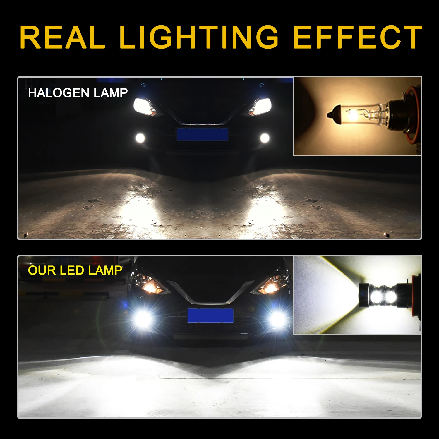 AUXITO 2Pcs 1400LM H8 Led Fog Light Bulb H11 H16 PSX24W H27 880 881 LED Lights 12V H3 H27W 6000K Auto Fog Lamp Day Running Lamp