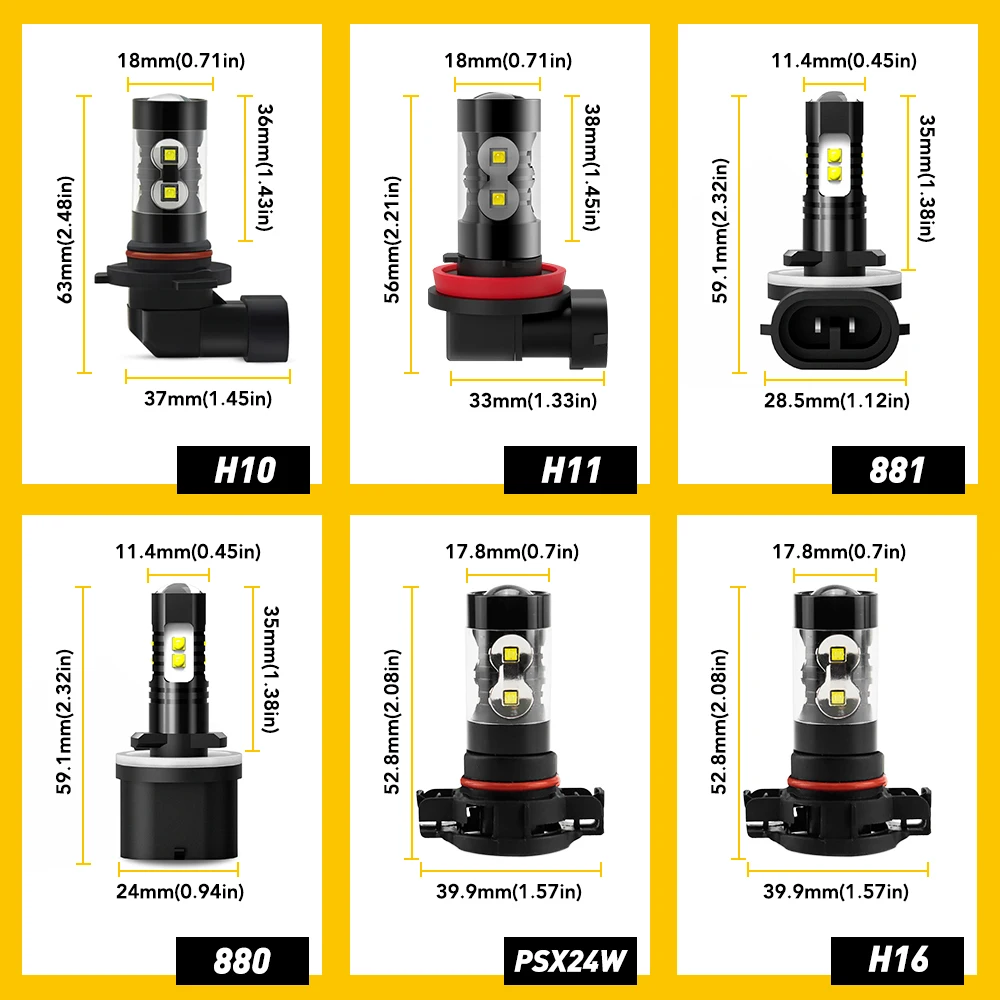 Socket Type: H8 H9 H11 H10 H27/881 H27/880 H16(JP) H16(EU)5202 PSX24W