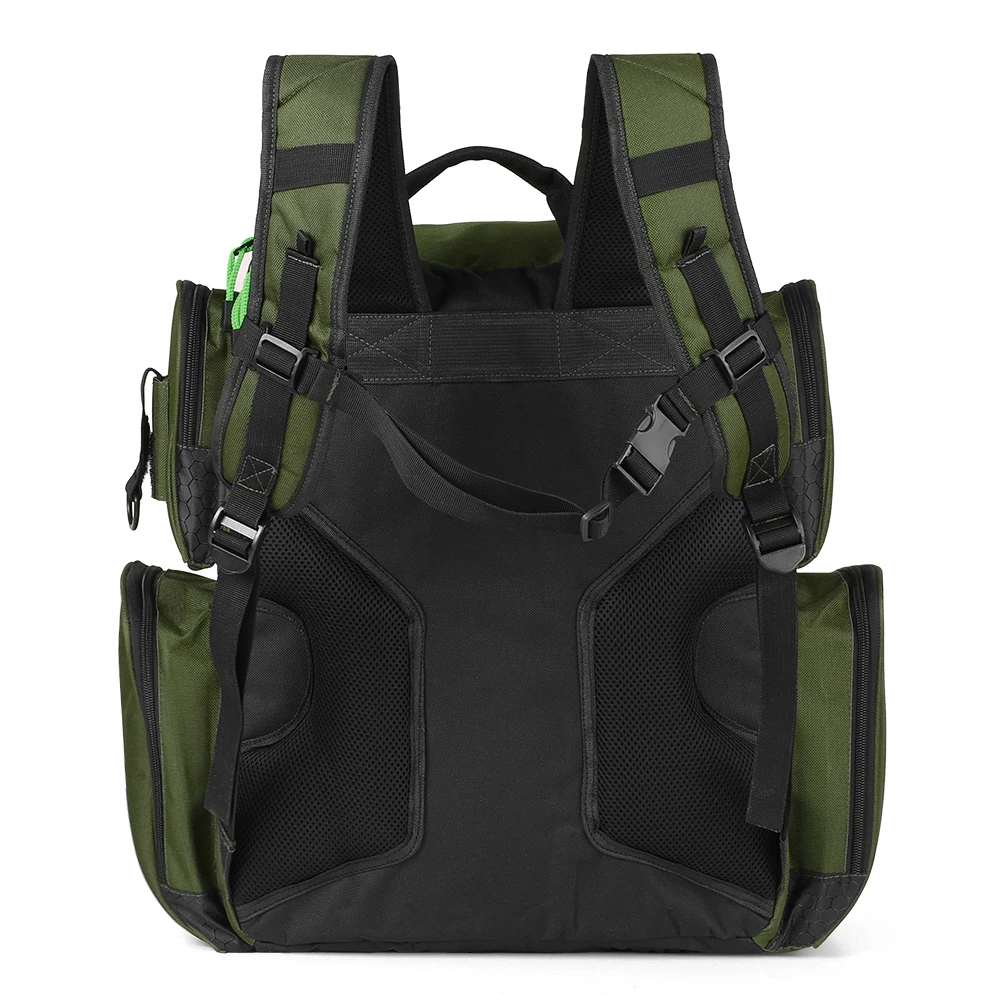 This fishing backpack has many compartments to keep your fishing lures and supplies well organized. It is water-resistant and anti-scratch, great fishing bag for all fishermen.