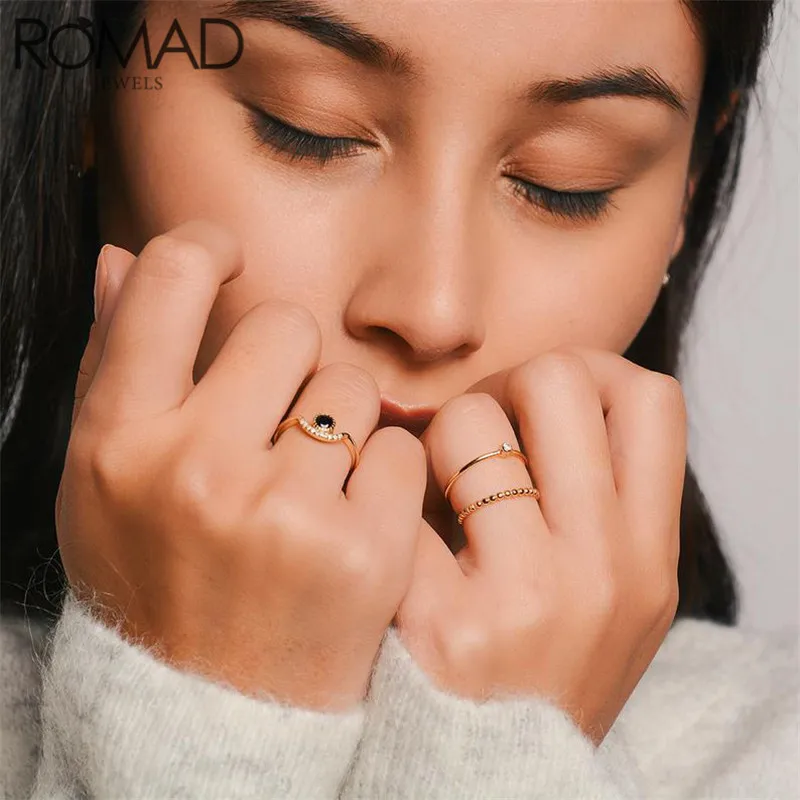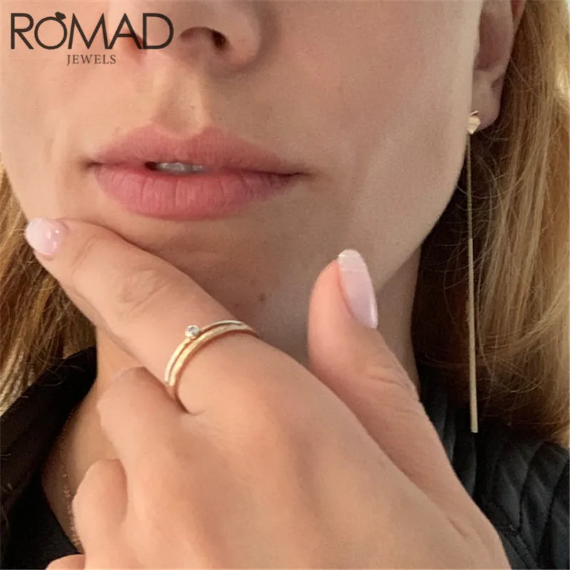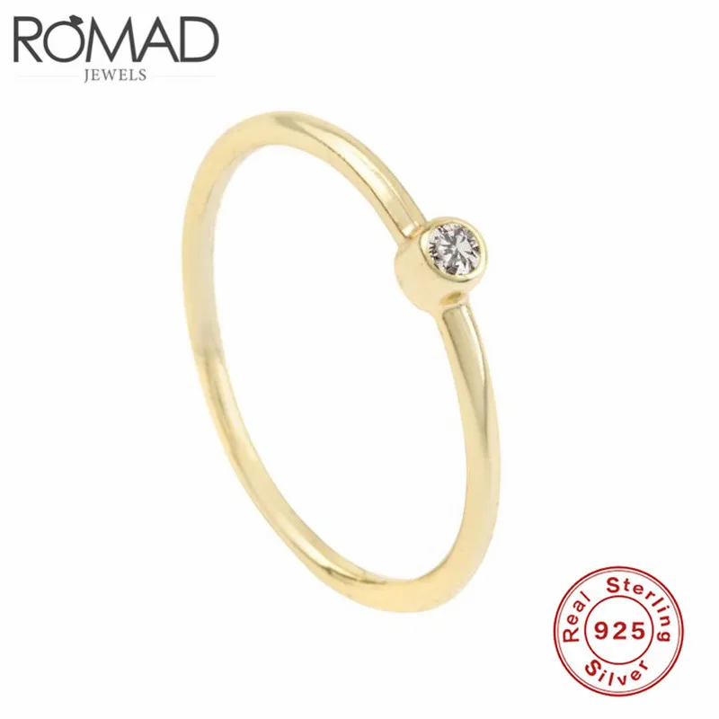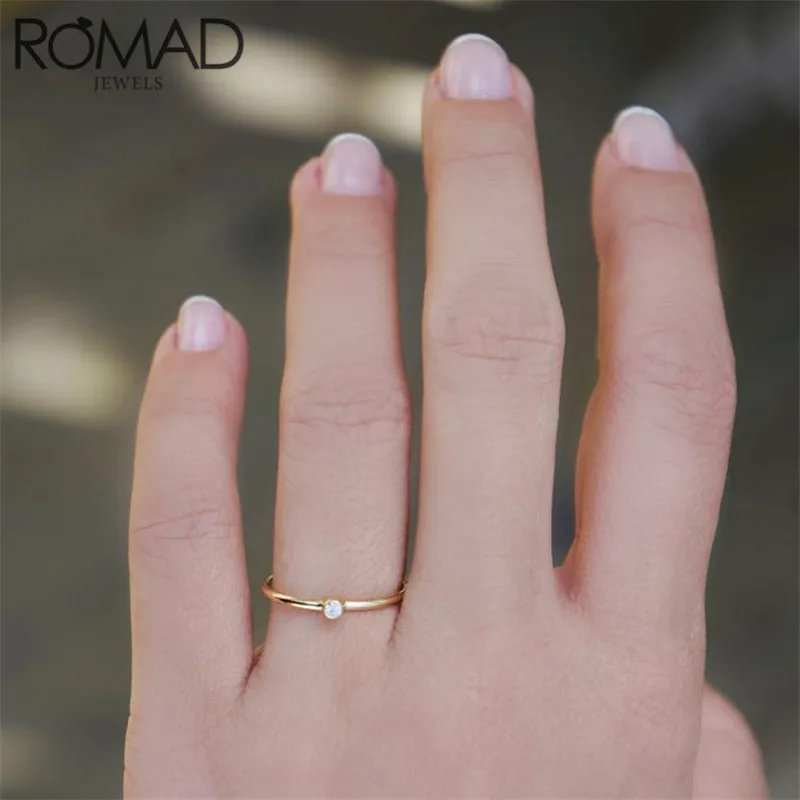 ROMAD Dainty тонкий дизайн кольца из стерлингового серебра 925 для женщин Минималистский Круглый Циркон Свадебные Кольца Золото Тонкий кольцо на палец женское