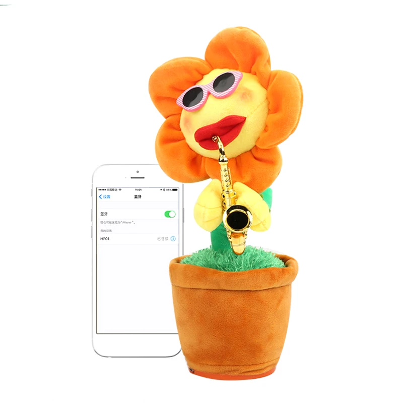 1pc Electric Toys Bluetooth Singing Dancing Saxophone Soft Plush Potted Sunflower Animated Dancing Flower Doll Light Music Toys