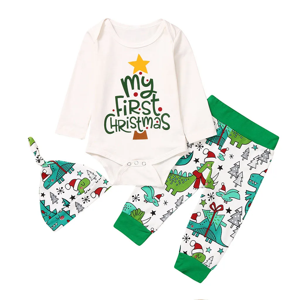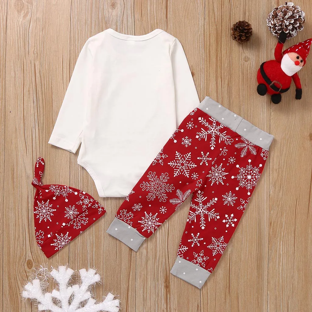 Рождественский комбинезон с надписью для маленьких мальчиков и девочек, боди + штаны с рисунком + шапочка