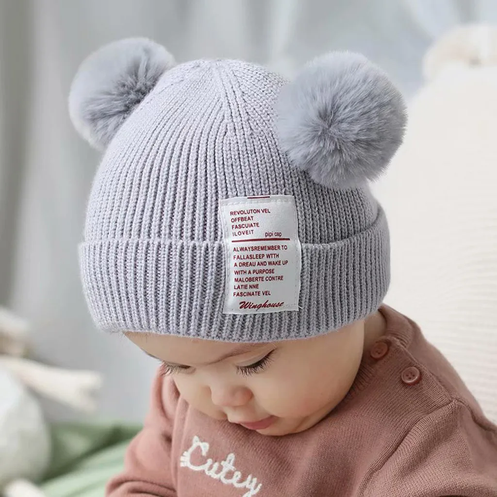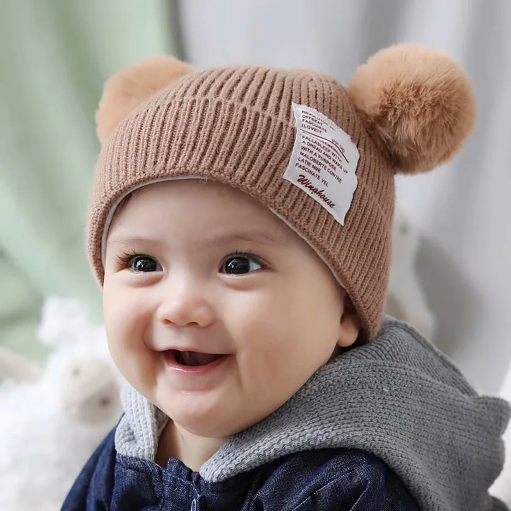 Зимняя одежда для маленьких Шапка для мальчиков и девочек с милым медведем; Шапка-ушанка для малышей; Теплая вязаная шапка