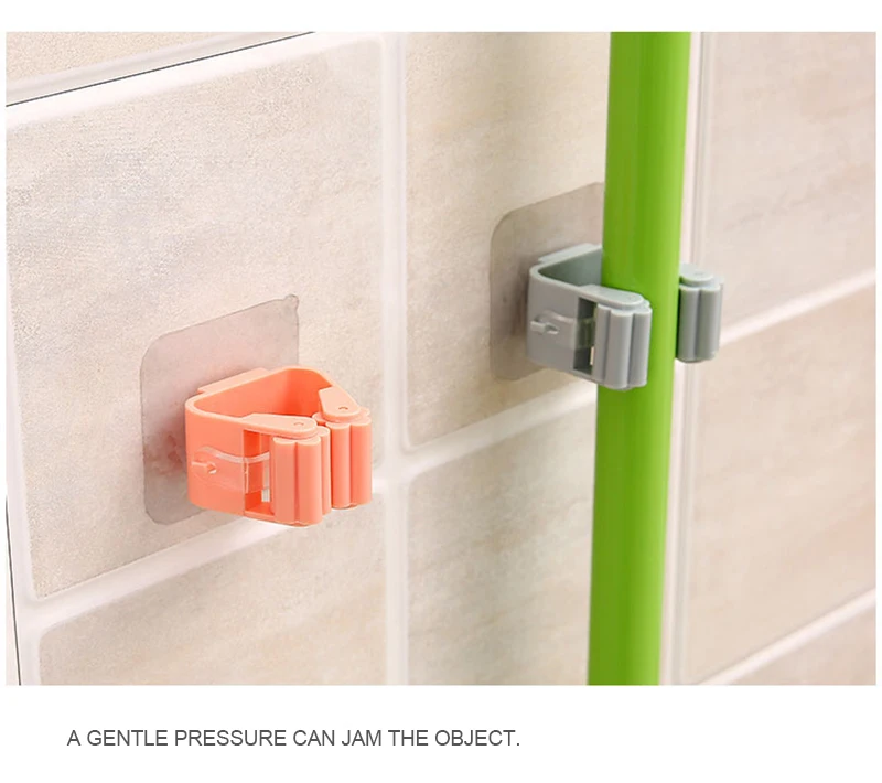Наименование: стойка для швабры без перфорации Тип: Крючки-держатели Материал: АБС-пластик Цвет: синий/розовый/белый Вес: 35 г Размер: немаркированная наклейка около 7 см, зажим около 5*3*5 см Подходит для: ванной комнаты, кухни и т. д.