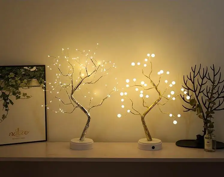 Дерево лампа сенсорный выключатель жемчужная звезда светодиодный медный провод лампа ночник фейерверк лампа