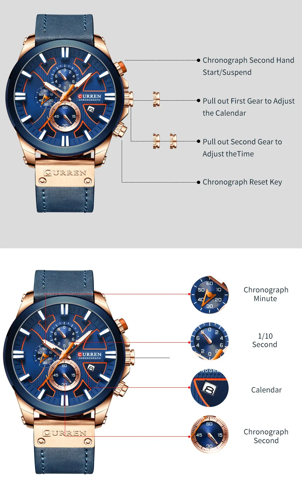 CURREN хронограф мужские часы 2019 бренд класса люкс синий циферблат Мужские часы из нержавеющей стали ремешок Дата мужские s деловые мужские часы наручные