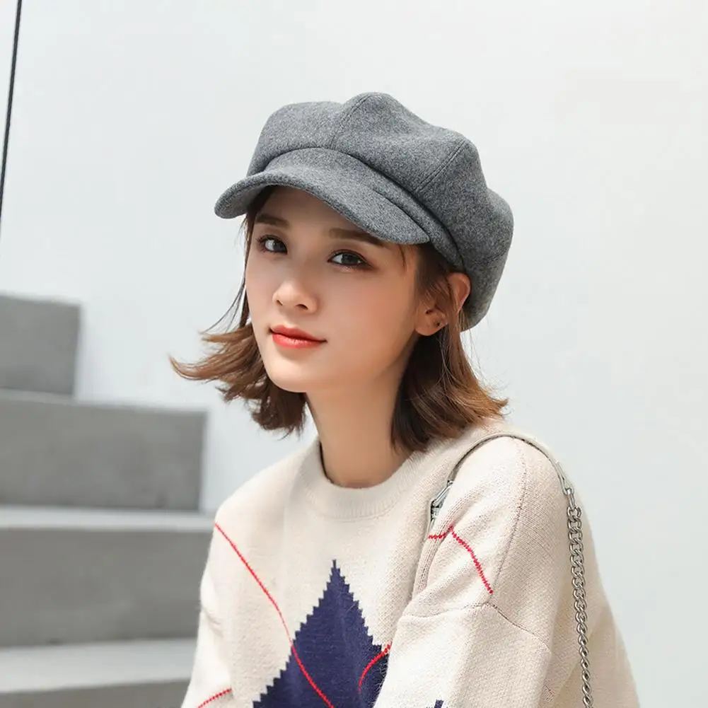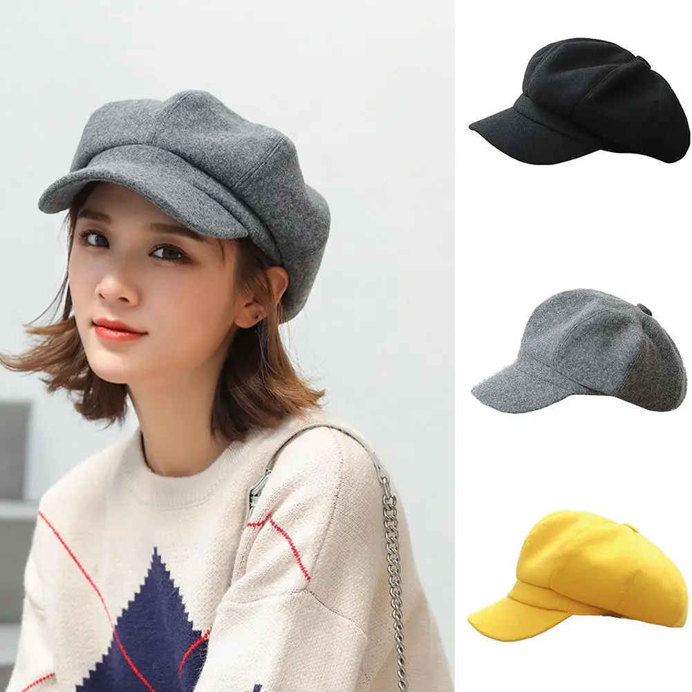 Женская шерстяная восьмиугольная Шляпа новая осенне-зимняя однотонная восьмиугольная кепка Женская может вместить берет Повседневный козырек для художника