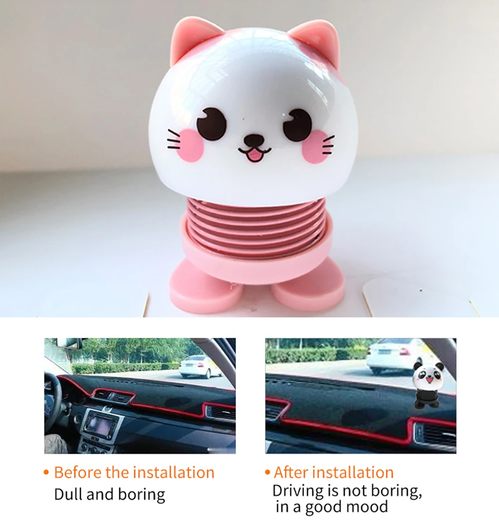 2019 Car shaking head ornaments inside jewelry ornaments smiley face doll panda cat cute car decoration 25