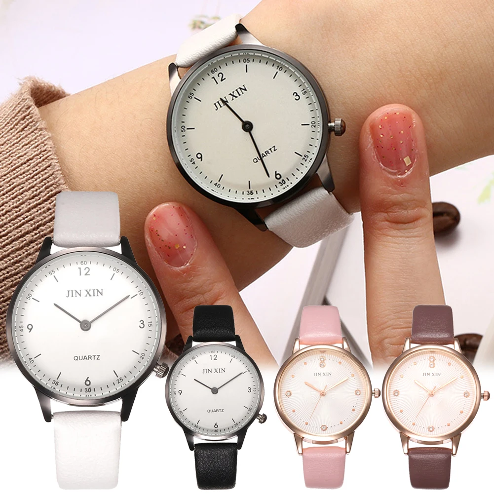 Модные Простые повседневные Стразы с заклепками, инкрустированные Круглым Циферблатом из искусственной кожи, роскошные женские кварцевые часы, новый подарок для дам 2019