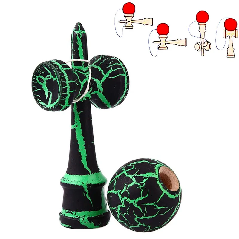 Kendama-отличный подарок, поощряющий соревнование и семейное удовольствие. Phoebe является экологически чистым, а также светильник имеет вес и долговечность. Используемый метод кракле краски гарантирует уникальный вид для каждого Kendama. Веревка привязывает якорь к мячу для обеспечения безопасности, но рекомендуется по усмотрению пользователя. Спецификация: Категория: деревянные игрушки Цвет: красный, синий, черный, фиолетовый, оранжевый, зеленый Материал: дерево Размер изделия: длина 18 см диаметр шара около 6 см Функция: получить мяч к мячу в различных частях может быть точно подобран после полюса в (верхней и нижней, левой и правой), кажется простым, но требует большого терпения и хорошего мастерства. Размер упаковки: 20*13 см Упаковочный лист: 1 * шар меча