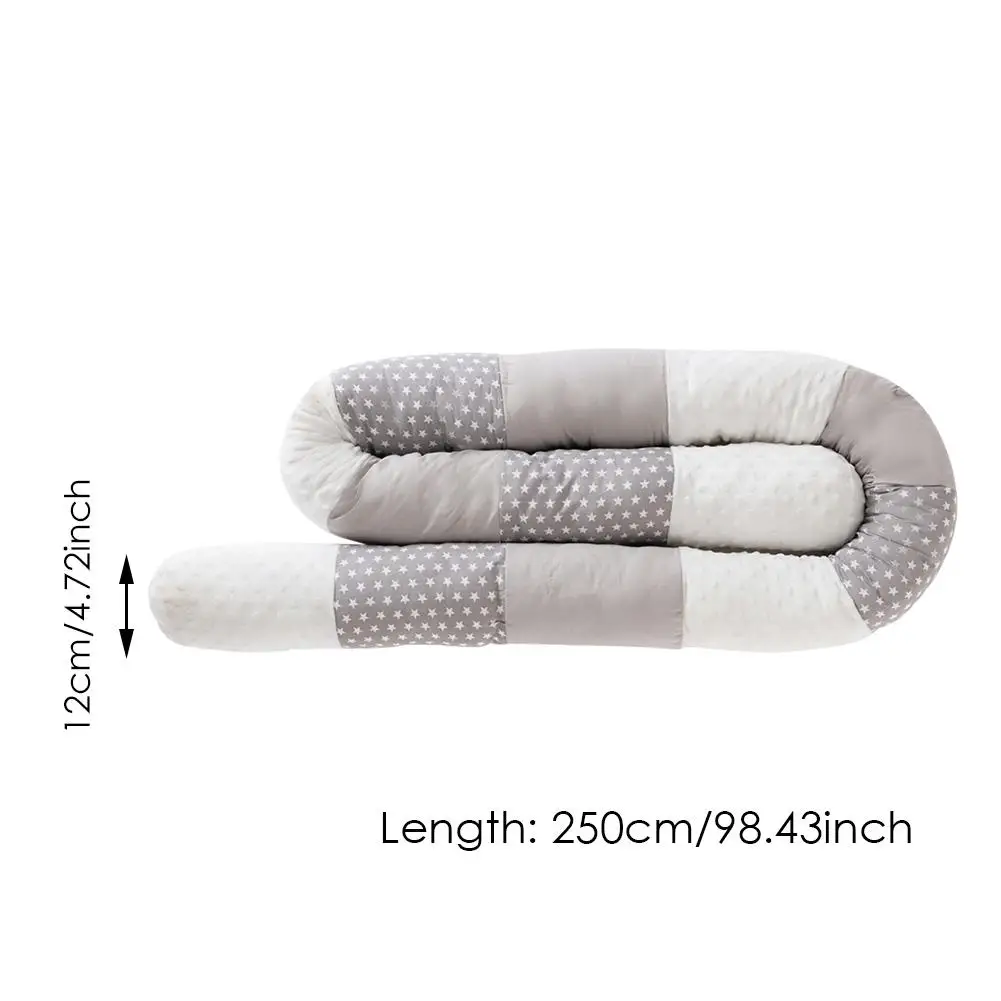 1. Форма и размер: 12 см в диаметре и 250 см в длину, изделие наполнено ультратонким полипропиленовым хлопком для очень мягкого ощущения, защита рук и ног ребенка в детских кроватках.1 * Накладка для детской кроватки