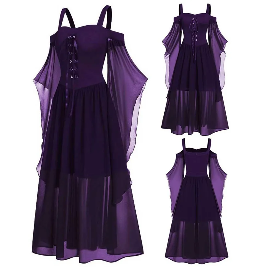 Платье для косплея Womne на Хэллоуин, с рукавом-бабочкой, на шнуровке, платье для Хэллоуина, Сетчатое платье с петельками на лямках, платье с открытыми плечами размера плюс