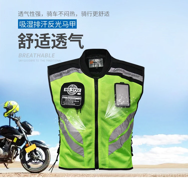 На груди и спине используется светоотражающая ткань, Безопасная езда ночью.