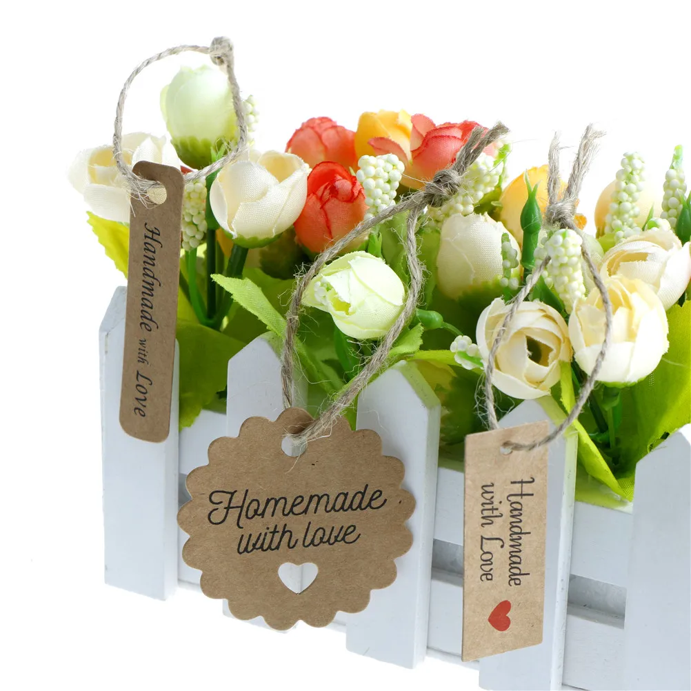 В комплект входит: 100 бумажных ярлыков + 10 метров веревки