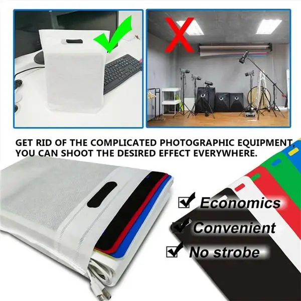 Собрать свою собственную фотостудию в любом месте за считанные минуты, вы можете развернуть эту светодиодную фотостудию и разместить ее на любой поверхности, чтобы получить идеальный фон для небольших предметов деловой фотографии, фотографирования для продуктов.