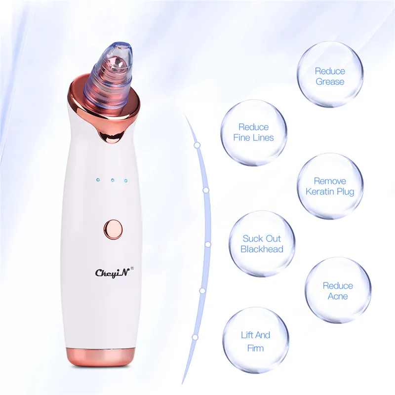 Упаковано с 4 различными зондами для решения всех ваших потребностей, удаления черных точек, жира, косметических остатков, прыщей, морщин с различных частей лица, также эффективно для микродермабразии, улучшая жизненный тонус кожи, помогает разбивать поры и делает кожу гладкой и подтягивающей.