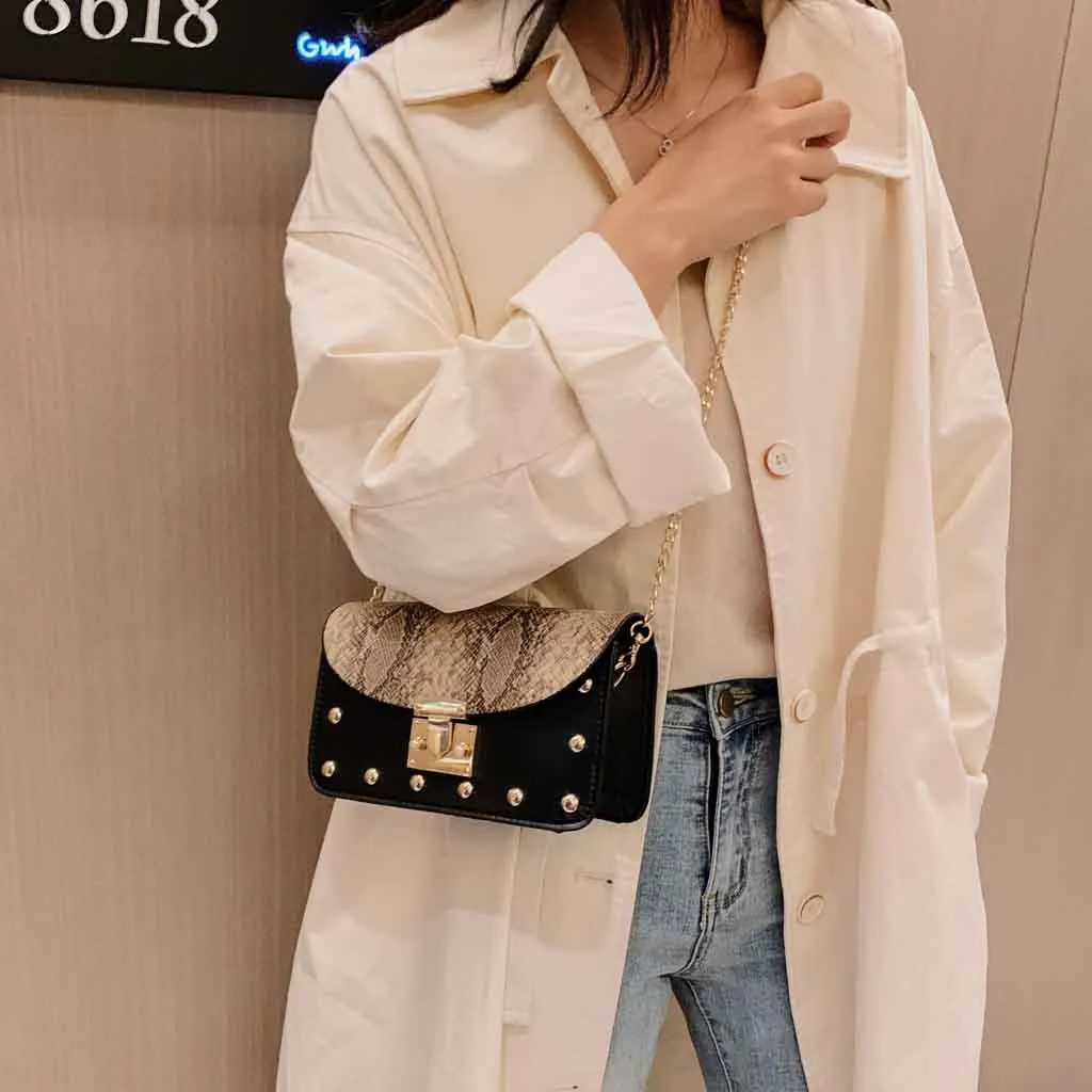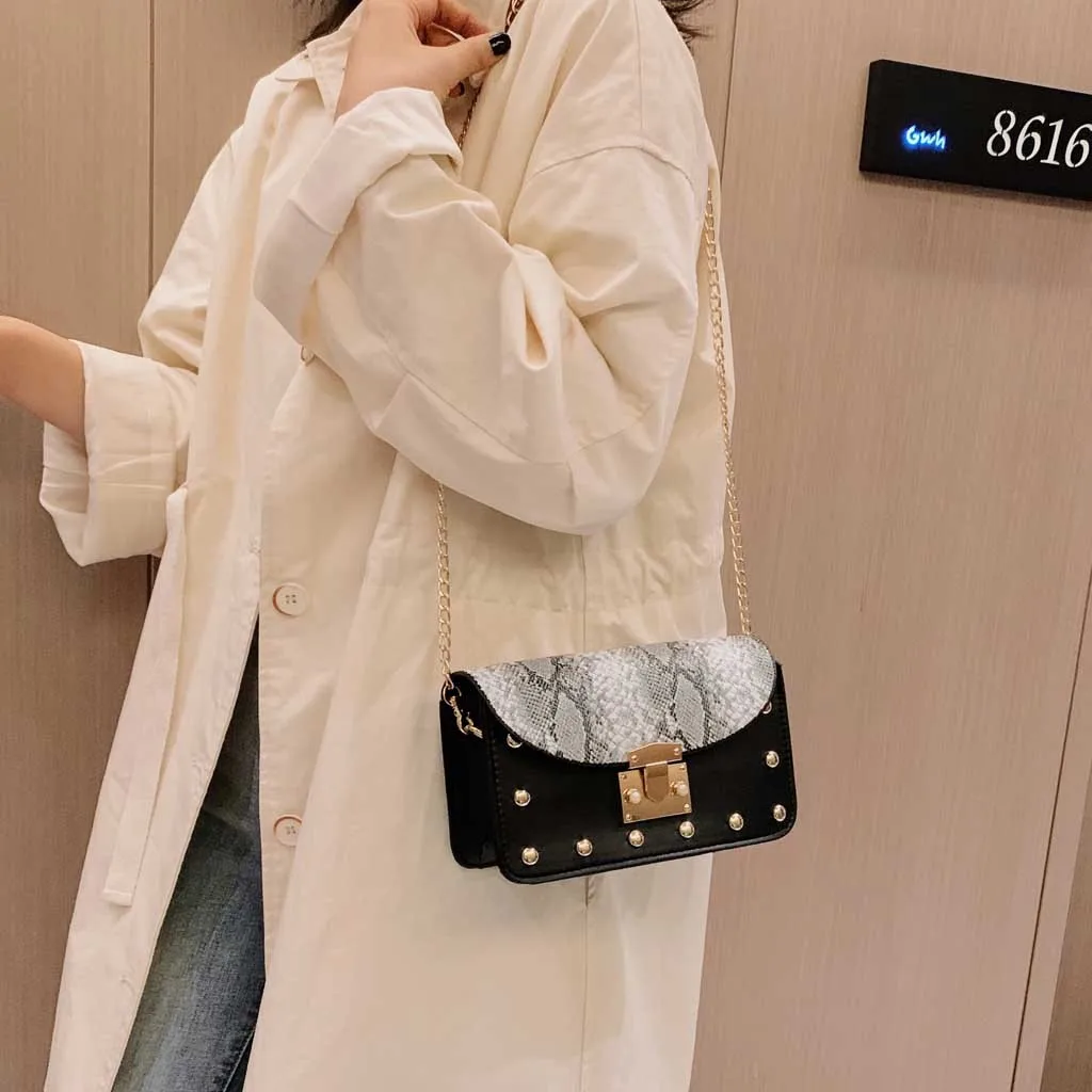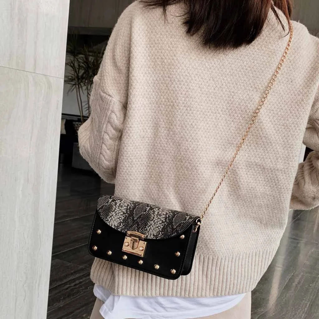 Женская сумка на плечо из змеиной кожи модная сумка мессенджер на цепочке маленькая квадратная сумка