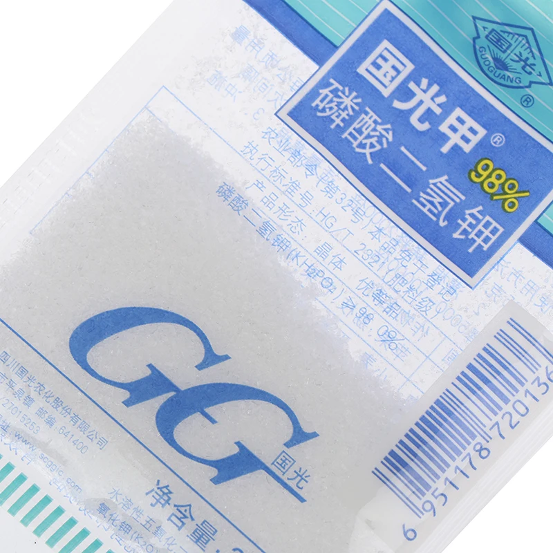 Е. Регулировка роста урожая. Дигидрофосфат калия имеет функцию регулирующего агента, может способствовать дифференциации бутона цветов культур, увеличить количество цветения, сильные бутоны цветов, сильные цветы и фрукты, улучшить набор фруктов, И эффективно способствует росту и развитию корней.