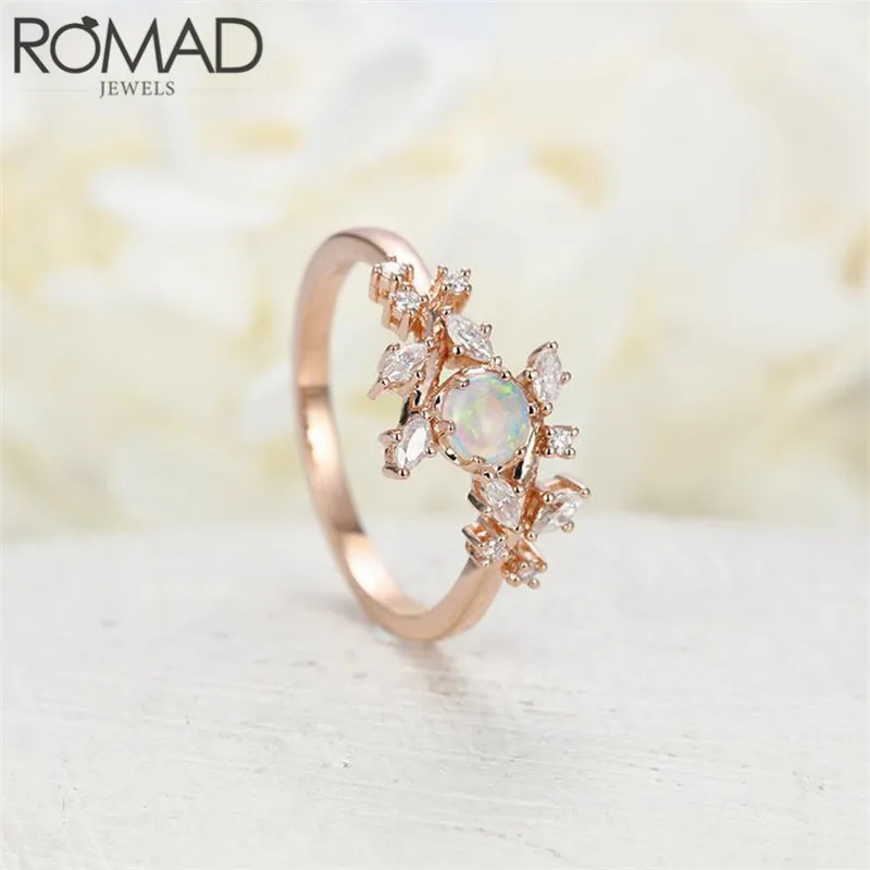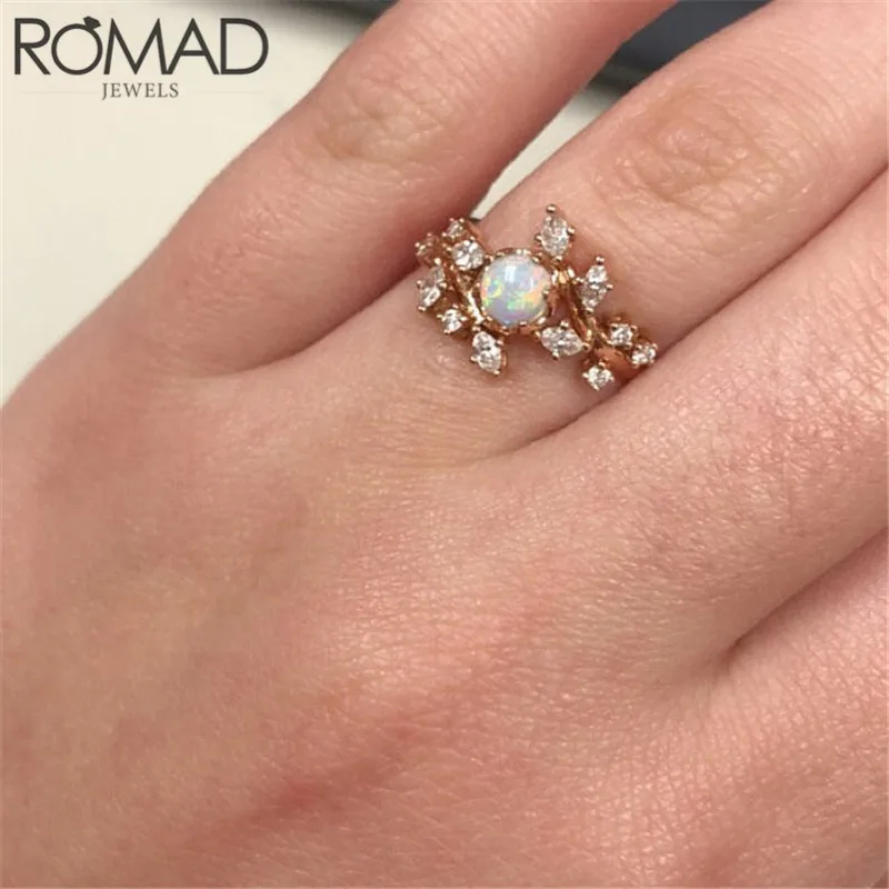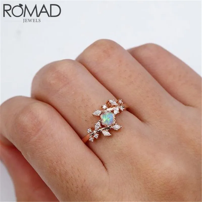 ROMAD Danity кольцо с кристаллами листьев оливкового дерева листья огненный опал кольца для женщин девушки свадебные кольца на фаланги, бохо ювелирные изделия на палец