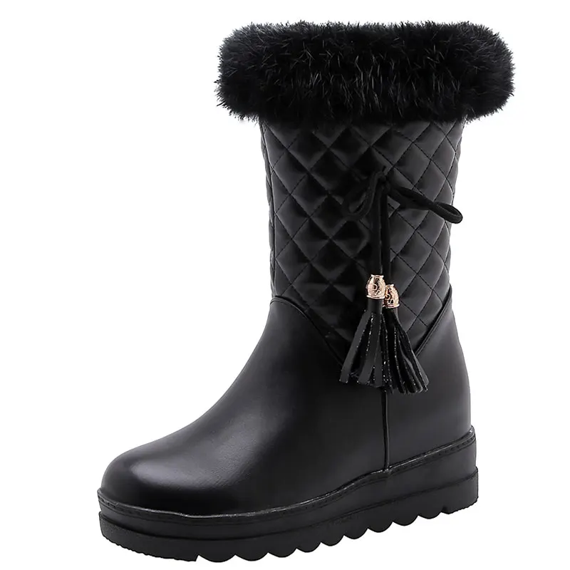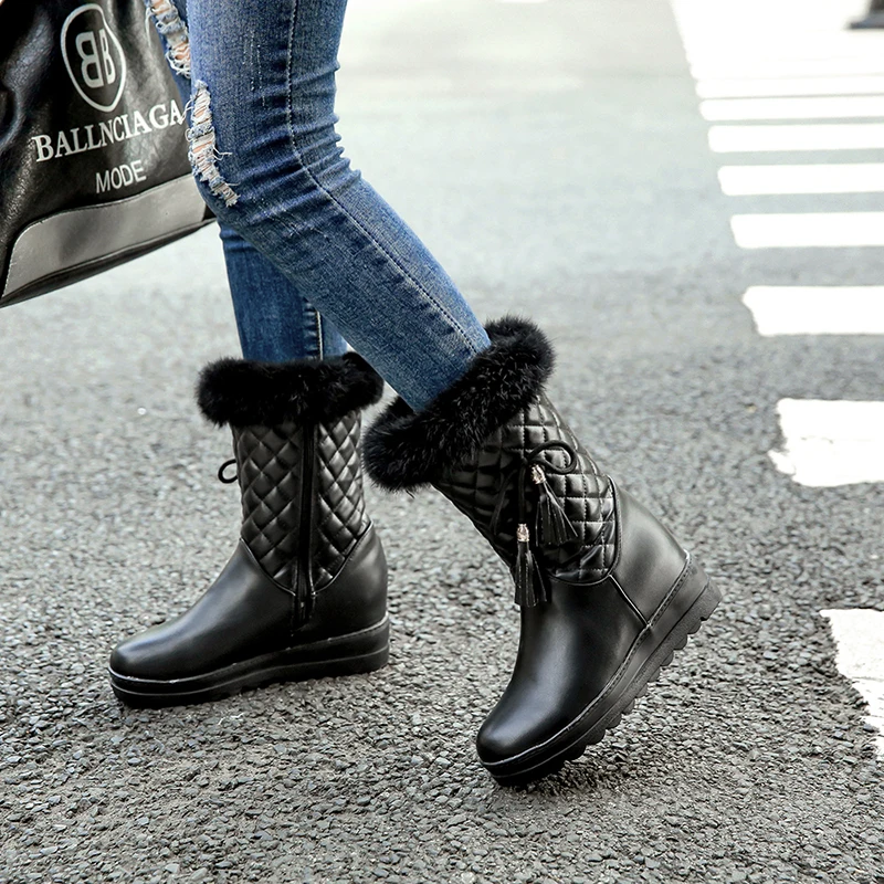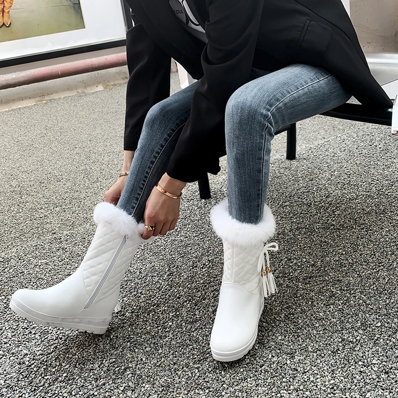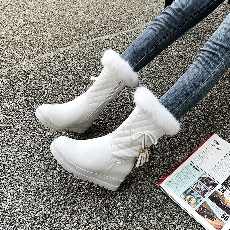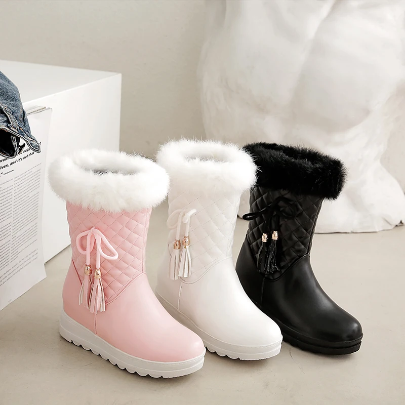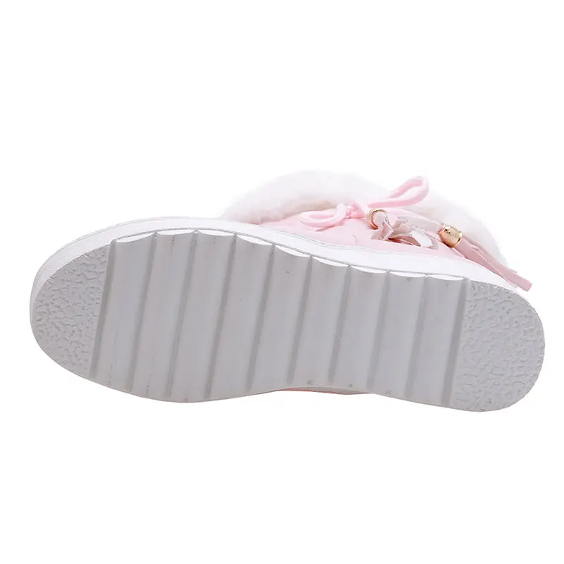 Lasyarrow/зимние сапоги; Сапоги до середины икры; Женские зимние сапоги на платформе и танкетке; Плюшевые теплые женские сапоги с бантом; Цвет розовый, белый, черный