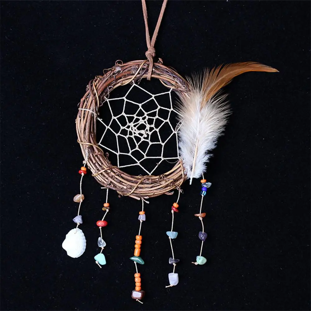 Материал: кольцо из ротанга + натуральный камень + перо + меточная нить + оболочка