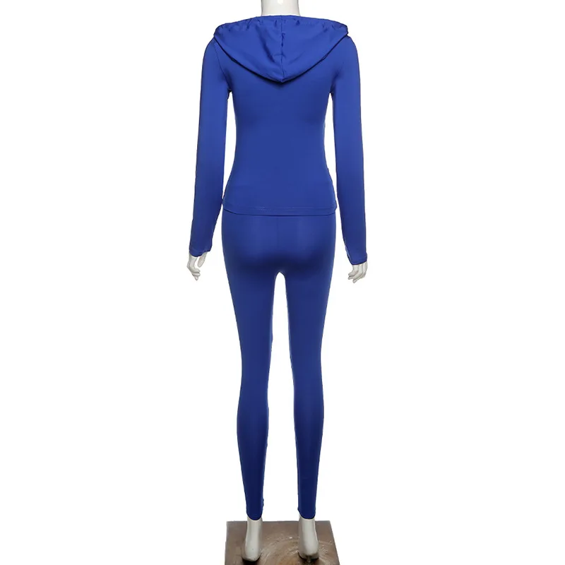 Женский однотонный спортивный костюм из двух предметов Adogirl, толстовка на молнии с длинными рукавами и капюшоном, узкие брюки, спортивные костюмы