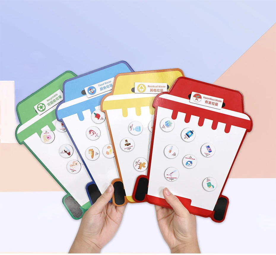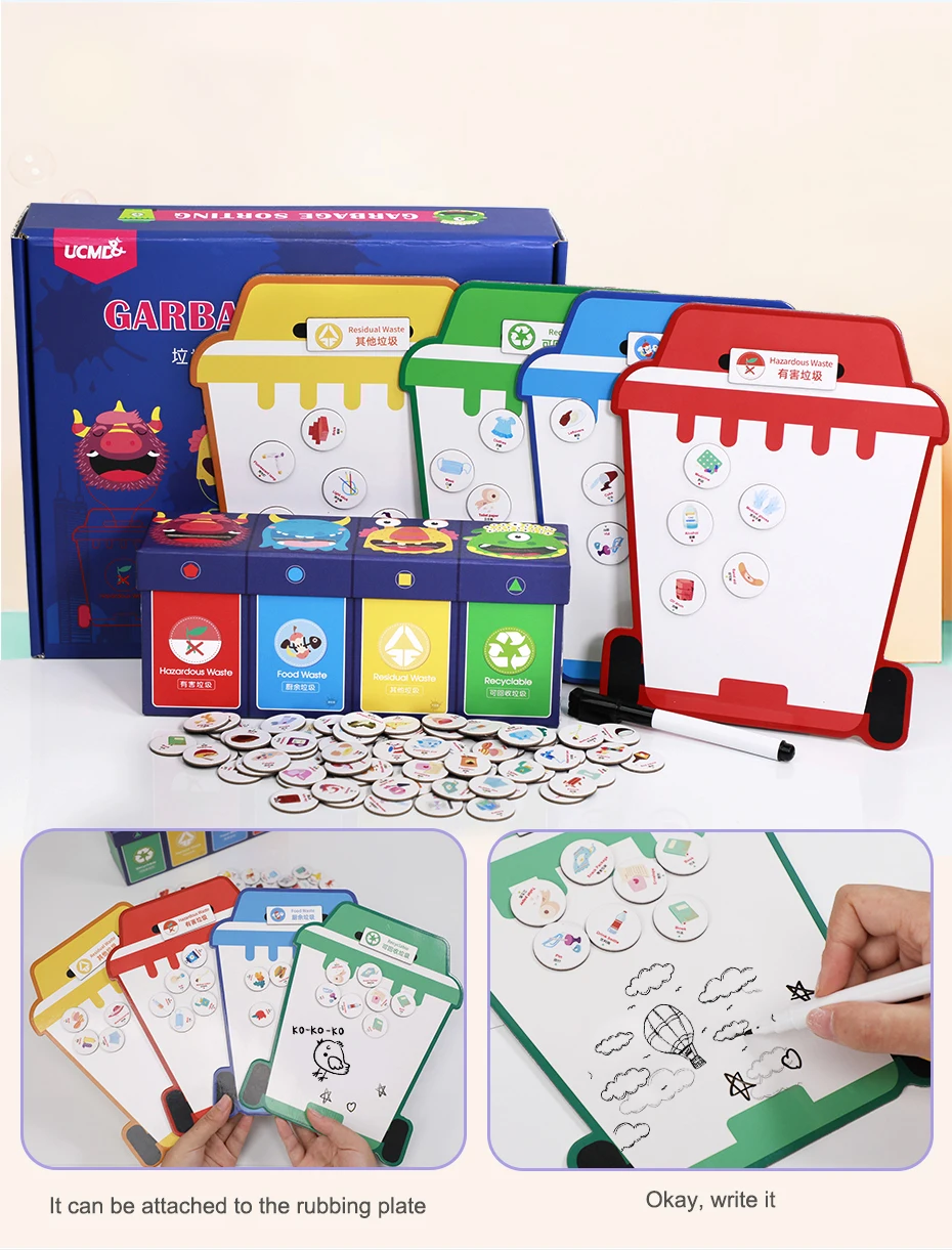 Родители могут адсорбировать магниты на соответствующей мусорной доске, могут использоваться, чтобы научить детей понимать и различать виды мусора, стирание доски может быть повторено стирание, дети могут быть использованы для практики письма и живописи.