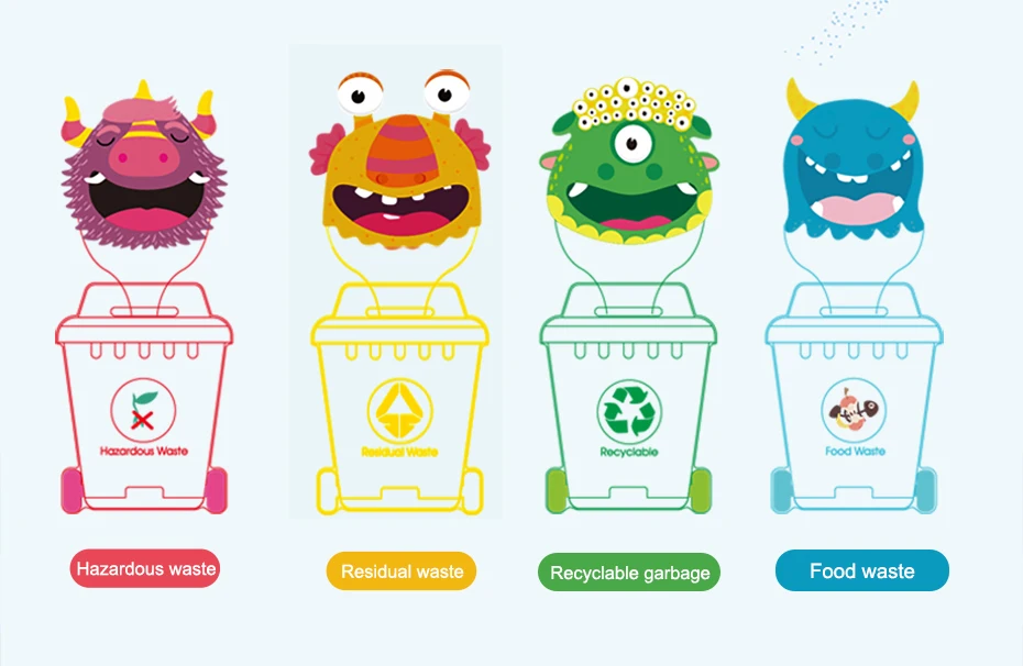 1. Продукт-игрушка для сортировки мусора. Он развивает экологическую осведомленность и способность к обучению детей с раннего возраста. 2. Продукт использует экологически чистые материалы, дети безопасны в использовании, легко переносятся, гладкие края. 3. Он также может использоваться в качестве семейных игр, улучшает отношения между родителями и детьми. 4. Яркий цвет может улучшить цветовую когнитивную способность ребенка и способствовать развитию зрения. 5. Знайте классификацию мусора и развивайте хорошие привычки.