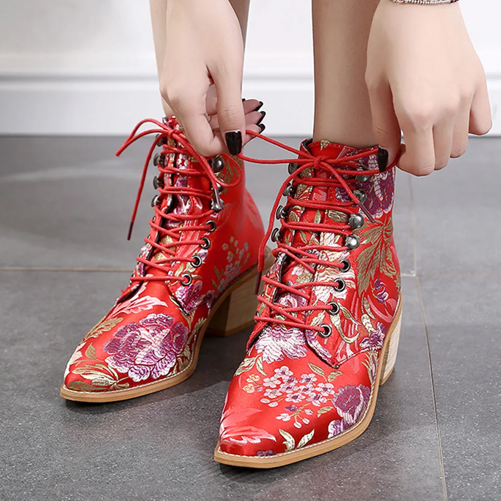 Женские короткие ботинки; модные тканевые ботинки с вышивкой