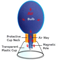 HACI Магнитная Акупрессура присоски (MASC) состоит из следующих компонентов: отрицательная напорная сумка, воздушный путь сумки, магнитная чашка наконечника, прозрачная трубка, полярная марка, трапециевидная Магнитная отклоняющая система, защитная чашка шеи и т. д.