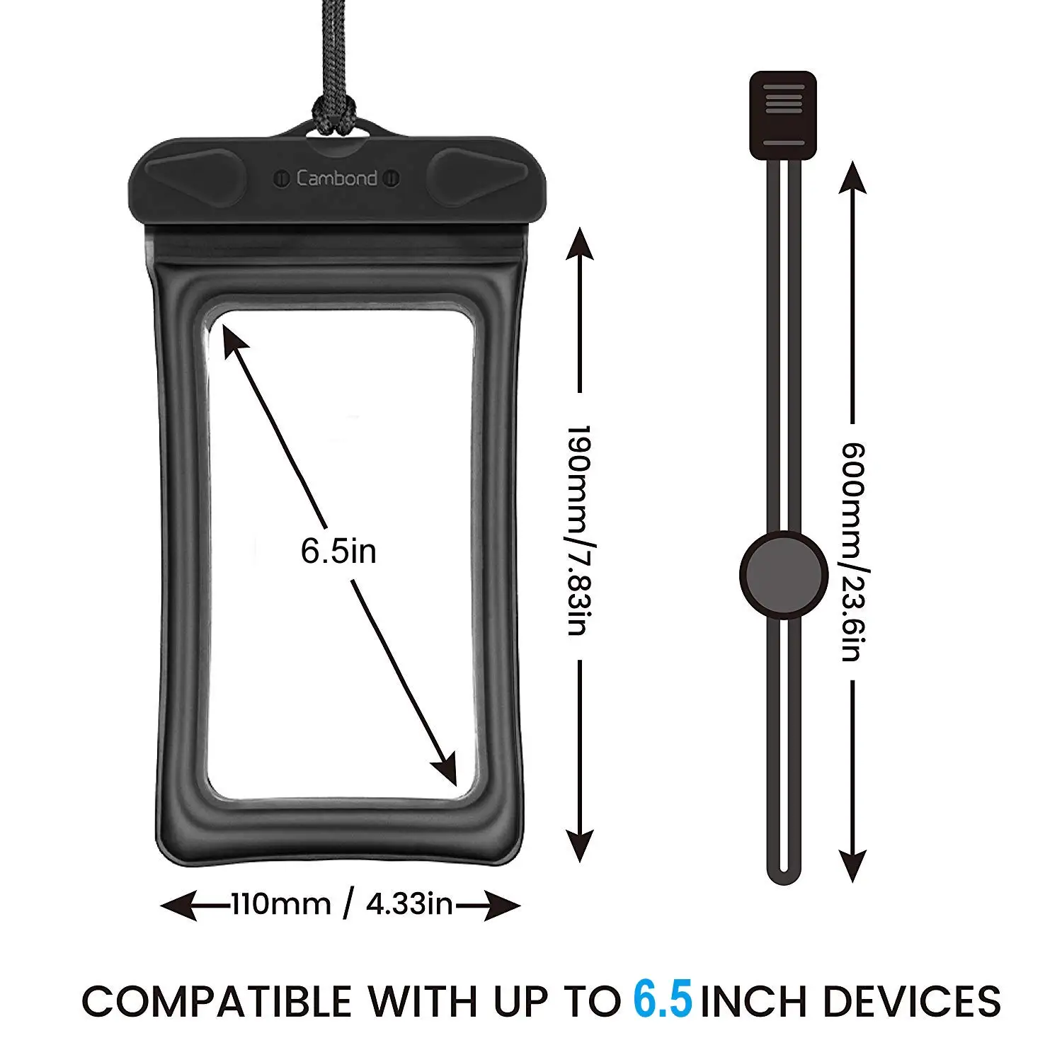 Водонепроницаемый корпус: обивка воздушного круга вокруг мешка делает его плавающим. (Флотаж будет зависеть от веса товаров и плотности воды. Пожалуйста, перед использованием проверьте, является ли он пригодным.) 100FT IPX8 сертифицированный водонепроницаемый: он защитит ваш телефон от воды, дождя, влаги, разлива, влаги и грязи. Водонепроницаемый, пылезащитный, грязеотталкивающий, снегостойкий. Универсальный Водонепроницаемый Чехол удобный для прогулок на пляж, бассейн, озеро, река, плавание, рафтинг, снег, дайвинг, дрейфующий, катание на лыжах, рыбалка, катание на лодках, катание на коньках, серфинг, Каякинг, подводное плавание, туризм, езда на велосипеде, кемпинг, парусный спорт и аквапарк. Вы также можете добавить кредитную карту, лицензию, наличные и несколько мелких вещей. Премиум-Материал s: 1. верх: безвредный материал ABS пищевого качества с плотным уплотнением обеспечивает безопасность телефона, легко открывается/закрывается; 2. прочный корпус: прозрачный высококачественный прозрачный экологически чистый пвх и Сенсорная чувствительность 99% позволяет использовать телефон и отвечать на звонки четко, как обычно; 3. Регулируемый шейный ремень изготовлен из высококачественного нейлона и может выдерживать не менее 20 кг натяжения, никогда не беспокойтесь о том, что он сломается при нормальном использовании. (Длина: 60 мм/23,6 дюйма) Подходит для устройств до 100 мм x 170 мм (размеры окна: 80 мм X 145 мм). Совместимость с устройствами с экраном телефона с диагональю 6,5 дюймов или менее уверенно. Например, iPhone XS Max XR X 8 7 6s 6 Plus, SE 5s 5C 5, iPhone 4S 4; samsung galaxy note edge, S8, S7 Edge, S7, S6 Edge Plus, S6 Edge, s6 S5 S4 S3, Note 5 4 3; Google Pixel, Pixel XL, Nexus 5X, 6 пар в комплекте; Oneplus 3t, 3,2; LG V20 G3; Moto Z, Z Play, Moto Z Force, G4, G4 Play; Alcatel Idol 4S; zte Axon 7; htc один M9 M8 A9. Обратите внимание: 1. Проверьте водонепроницаемую функцию с тканью и выдавите весь воздух из футляра перед каждым использованием и держите его в сухом состоянии после использования. 2. Когда под водой, сенсорный экран не будет таким чувствительным, как обычно, вызванным естественным давлением воды. Пожалуйста, включите камеру выше воды и сделайте фотографию с помощью кнопки громкости. 3. Водонепроницаемый чехол для телефона из ПВХ не может активировать iPhone 8 7 7 Plus чувствительную к давлению кнопку домой, которая работает только при включении AssistiveTouch.