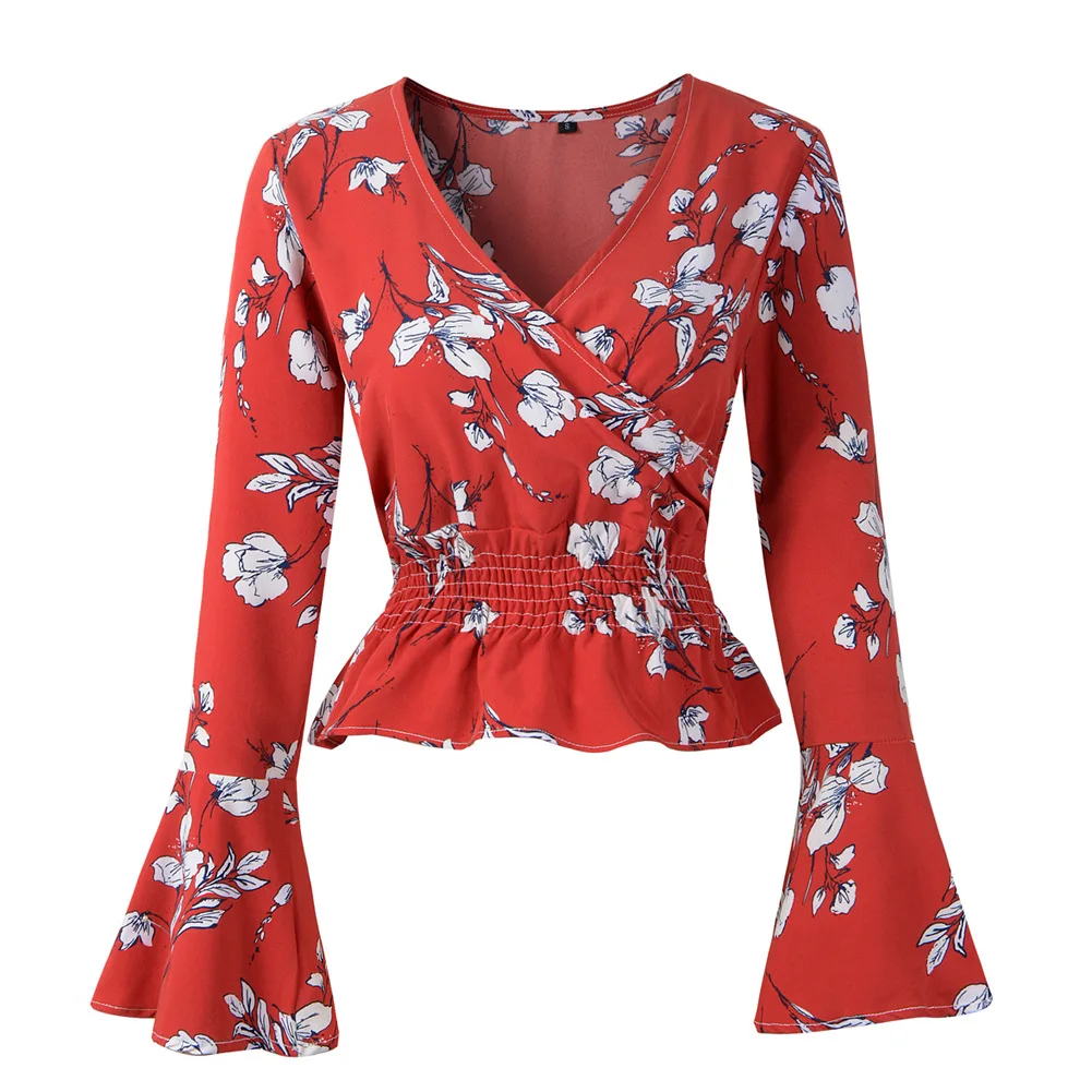 Рубашка с длинными рукавами для женщин уличная Новинка осени, v-образный вырез, с воланами шифоновая рубашка с длинным рукавом Блузка для детей в возрасте для женщин; Большие размеры 2XL