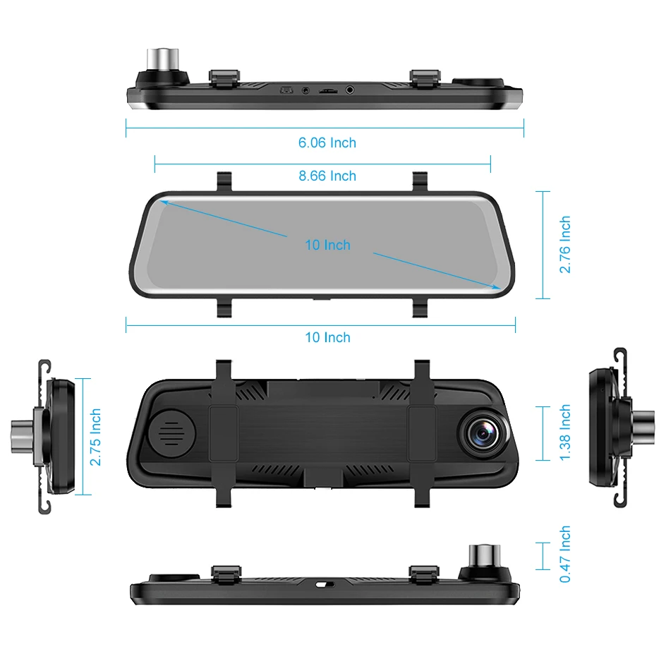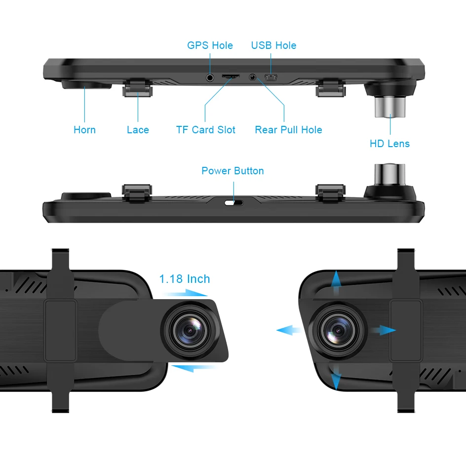 Полноэкранный сенсорный экран IPS показывает яркое изображение и видео в реальном времени и воспроизводит важный момент даже за рулем с высокой скоростью. Более широкое поле зрения и отсутствие слепых пятен. Как поток, протекающий на потоковом зеркале. Невероятный опыт для вас!