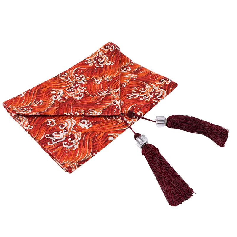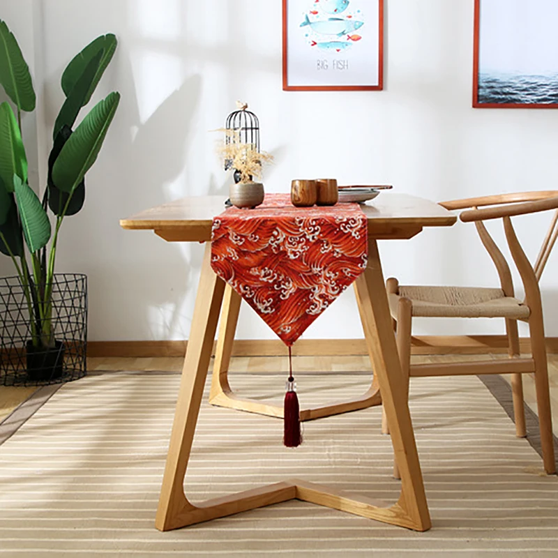 Винтажная настольная Дорожка в японском стиле, красная/синяя морская волна, кисточка для скатерти, коричневые цветы, хлопок, лен, журнальный столик, скатерть