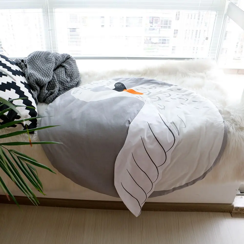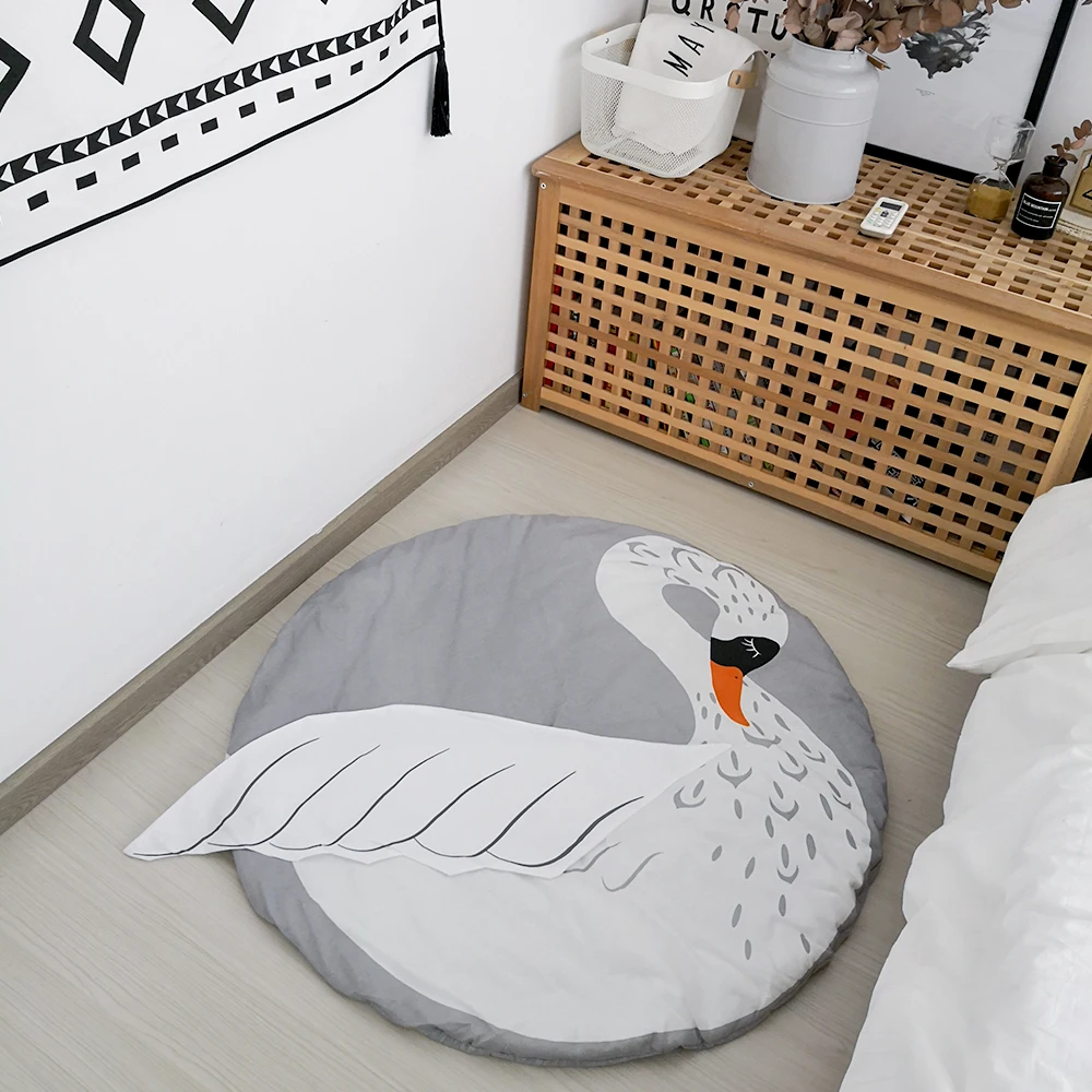 This rug is made of cotton, soft and comfortable. Cartoon swan design, cute and attractive. It's suitable for game mat, rug, baby crawl mat, pet mat and so on. Also, it's a great gift for your babies, for your friends and for your family!