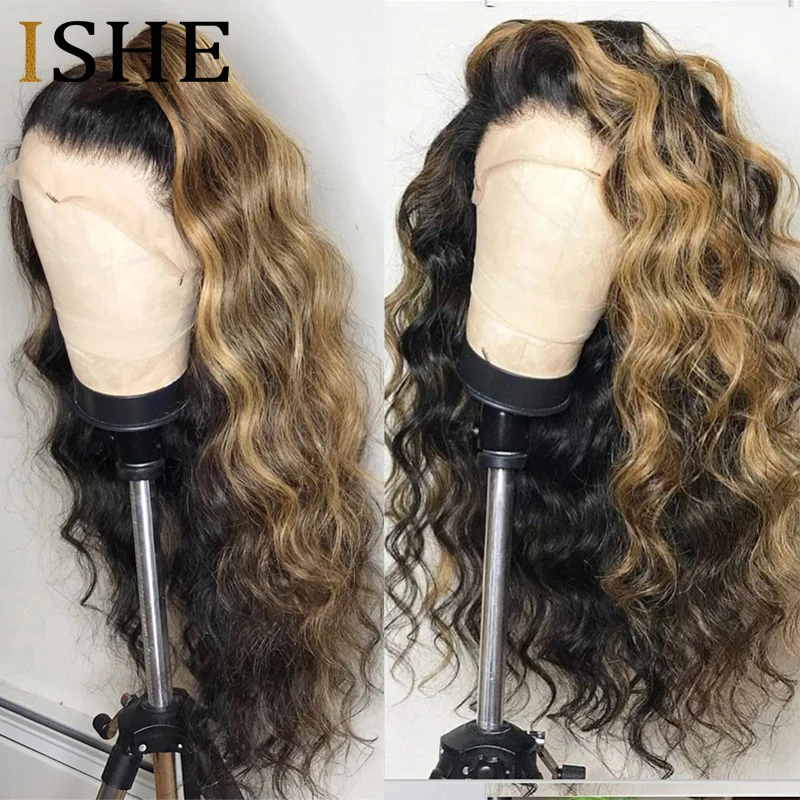 Медовый блонд 360 кружевной передний парик Омбре кудрявые кружевные передние человеческие волосы парики предварительно выщипанные полный парик шнурка для женщин черные волосы Remy 150