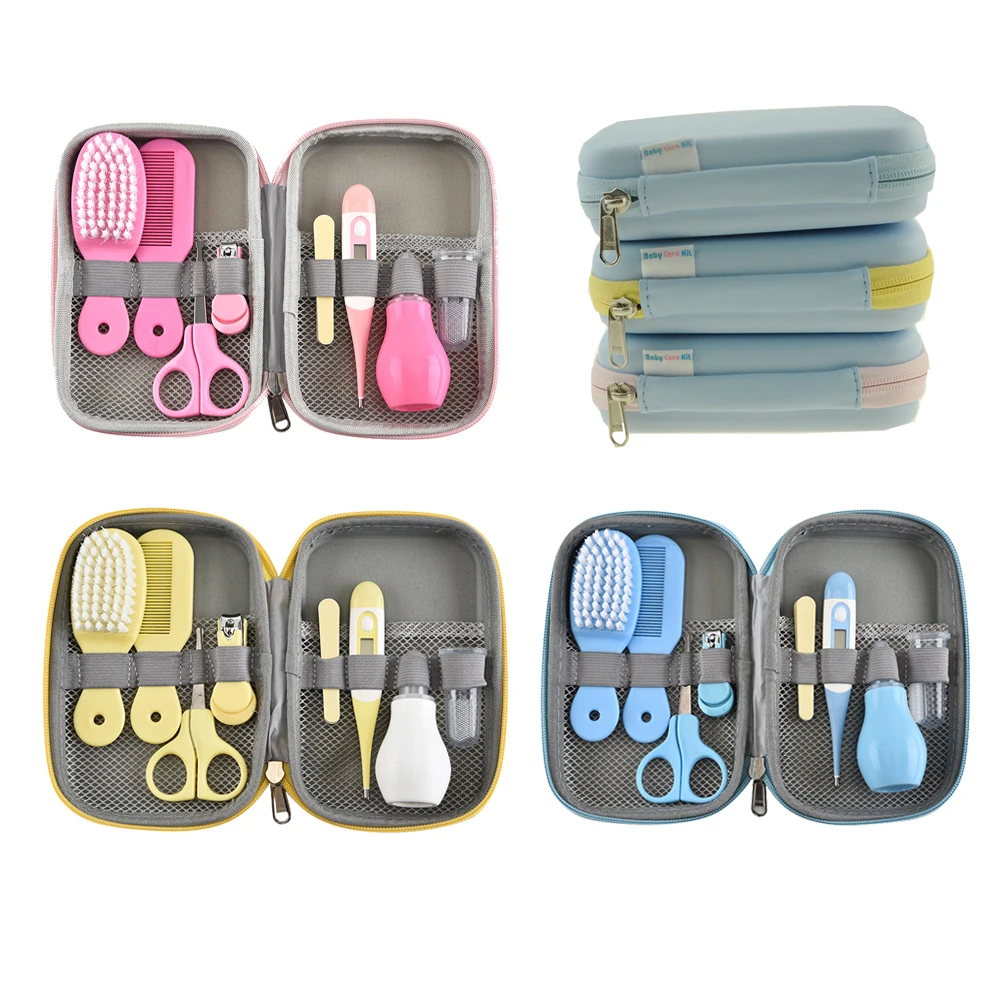 8Pcs/Set Baby Health Care Kit Thermometer Nose Cleaner Toothbrush Safety Tools Newborn Grooming Brush Kit Baby Nail Care