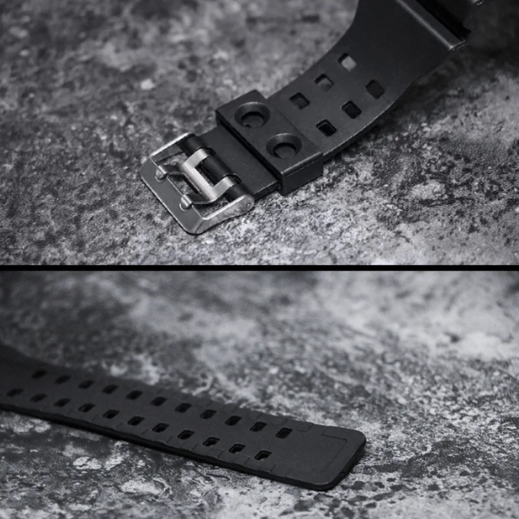 Ширина ремешка: 22 мм Длина ремешка: 260 мм (включая чехол) Материал ремешка:СмолаИнструкция по применению:1. Часы, как нормальный дисплей Нажмите M, нажмите вниз до секундомера функции, в соответствии с 2 настройки будильника, в соответствии с 3 настройками календаря времени.