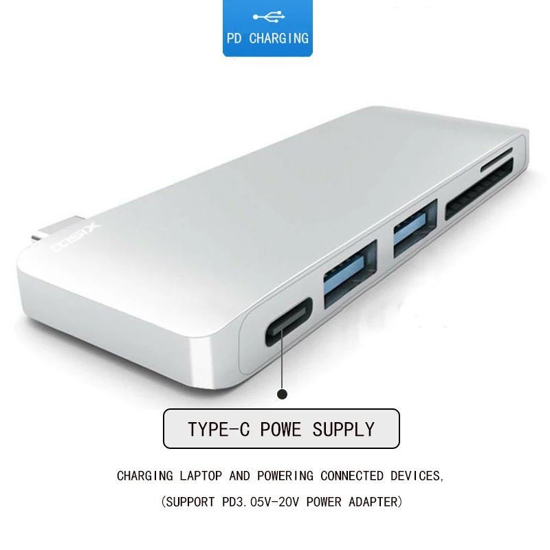 Адаптер-концентратор Bkscy Type-C с 2 портами USB 3,0, картридером для SD, Micro SD и usb-хаб и зарядным портом для концентратора usb C MacBookPro