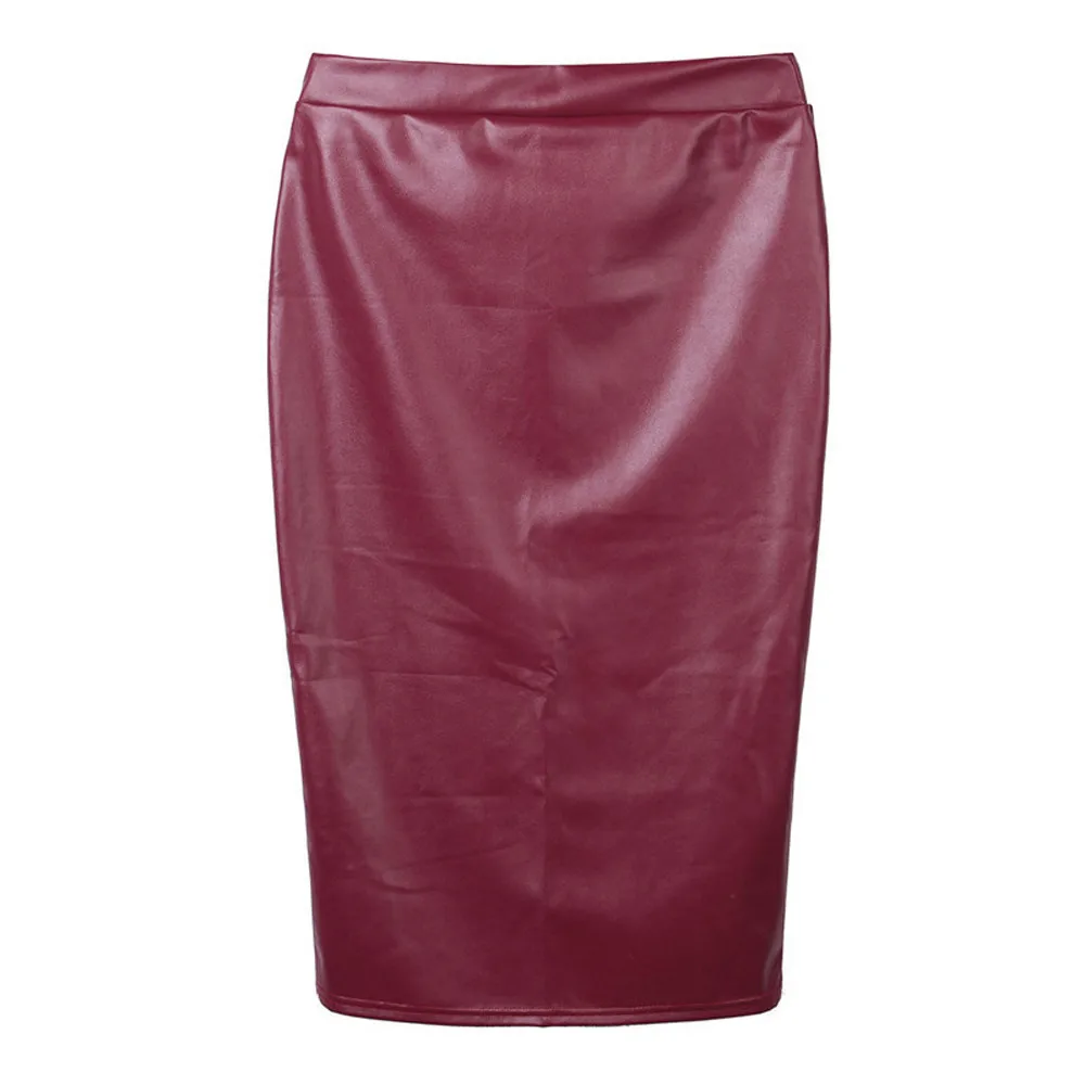 Женская кожаная юбка, высокая талия, тонкие, вечерние, юбка-карандаш, длинная, металлизированная, серебристая, макси, плиссированная, для офиса, леди, облегающая юбка, Saias