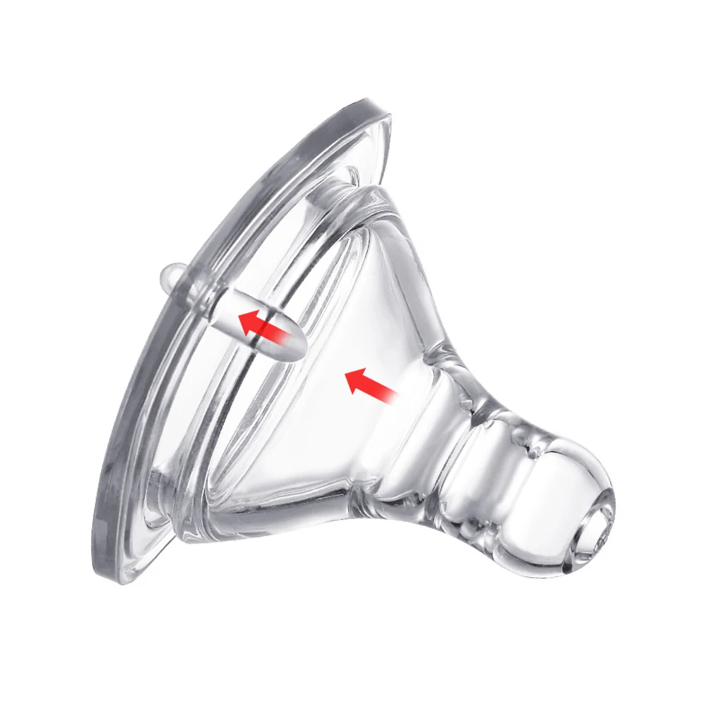 Широкий дизайн рта способствует естественным всасывающим движениям, делая их более мягкими и гибкими.