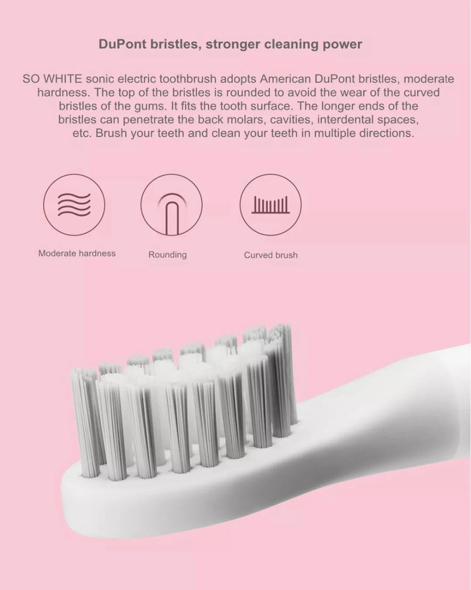 • Водонепроницаемый: IPX7 водонепроницаемый, Полностью моющийся ►Дизайн корпуса: матовая текстура, удобный захват. ►Три режима: стандартный режим, мягкий режим, режим массажа. ►Тонкий и легкий вес: весит всего 50 г, путешествует в деловой поездке и легко переносится. ►Беспроводная Индуктивная зарядка: заряжайте зубную щетку непосредственно на зарядной док-станции во время зарядки. ►Эффективная очистка: 31000 высокочастотных вибраций в минуту, Эффективная очистка поверхностей зубов и Эффективная очистка поверхностей зубов ►DuPont щетины: с помощью DuPont щетины, умеренная твердость, может углубить зубы в моляров, полостей, межзубных пространств и т. Д., Очистка зубов в нескольких направлениях. ►Головка щетки из мягкой резины: головка кисти разработана с мягкой резиновой пленкой, чтобы избежать синяков рта из-за неправильной силы при чистке зубов.