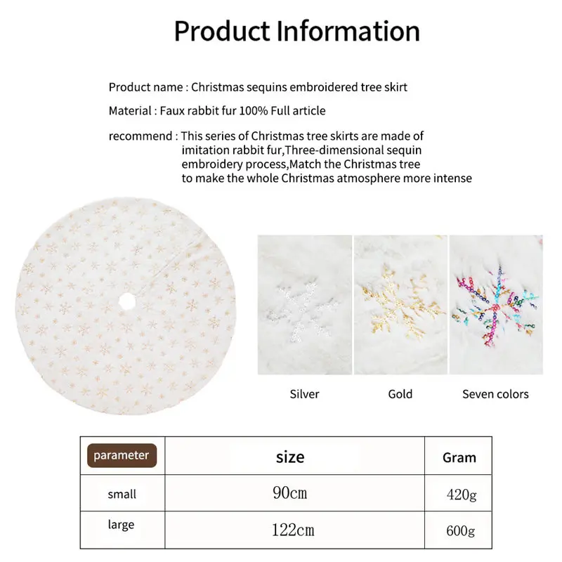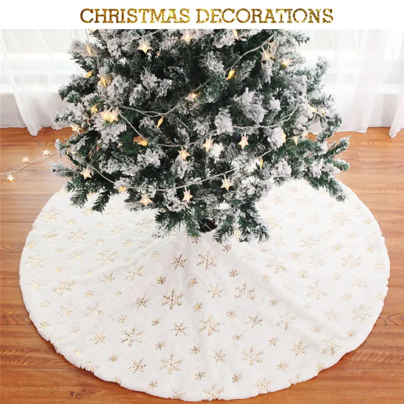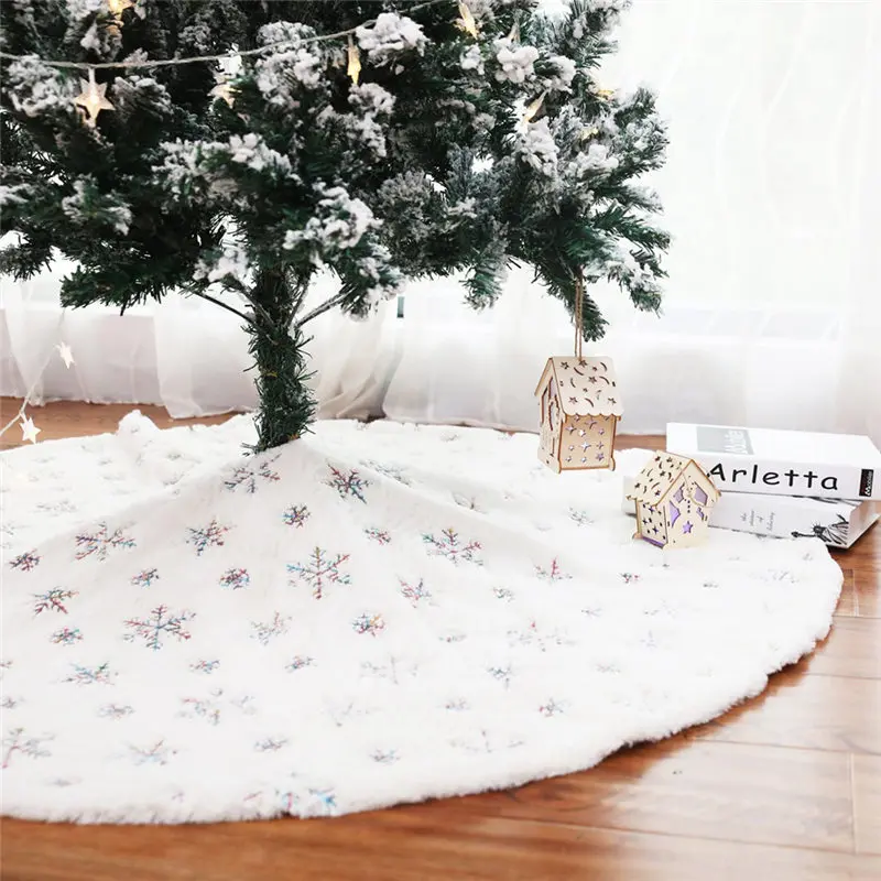 90 см/122 см белая мягкая юбка с искусственным кроличьим мехом, вышитая Снежинка, Рождественская елка, Новогоднее украшение для дома