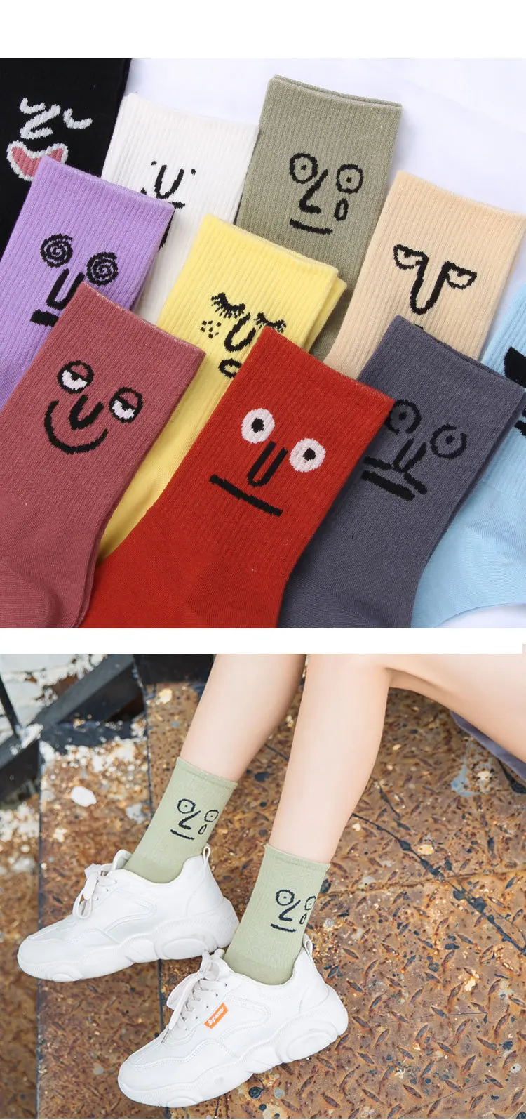 Разноцветные забавные носки с вышивкой