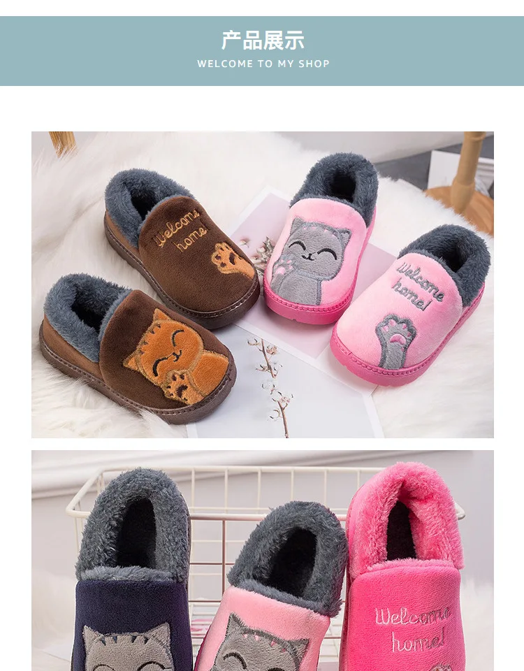 Зимние детские тапочки; Детские Вьетнамки; Домашняя одежда для маленьких девочек; Тапочки для мальчиков; Домашние хлопковые тапочки с рисунком кошки; Домашняя теплая обувь
