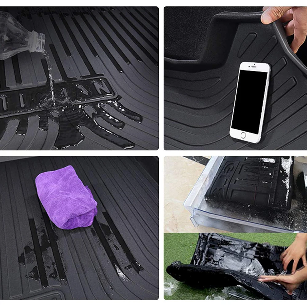 1. 1 x передние всепогодные коврики (сторона водителя) 2. 1 x передние всепогодные коврики (пассажирская сторона) 3. 1 x задний ряд Tesla модель 3 напольный коврик