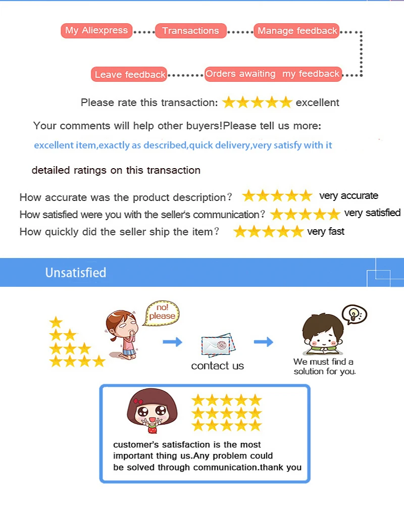 3. Пожалуйста, оставьте сообщение, прежде чем дать плохие отзывы, если продукты имеют некоторые проблемы. Спасибо за понимание.