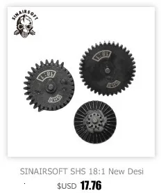 Для замены оригинальной шестерни используется Модернизированный механизм питания из стали с ЧПУ. Может повысить долговечность, эффективность и надежность. Это может снизить скорость, но начальная скорость на пистолет (FPS) резко увеличилась. Это важная часть обновления вашего редуктора.