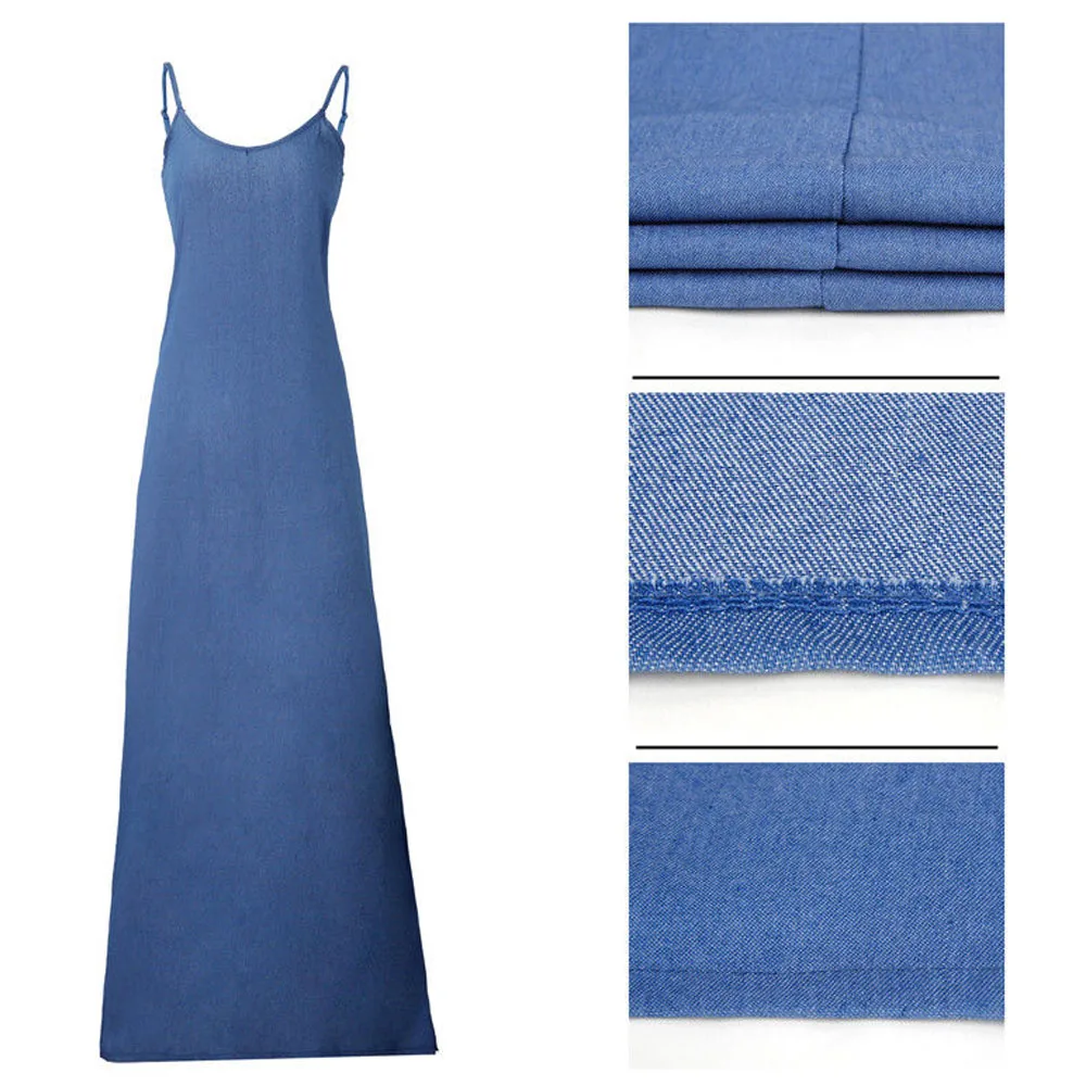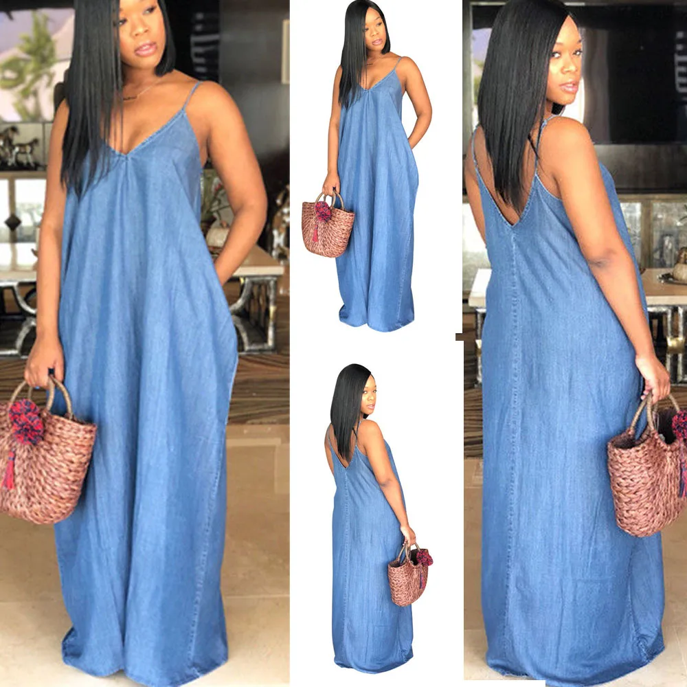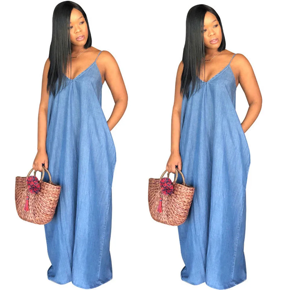 Style : V-neck Denim Long Maxi Dress