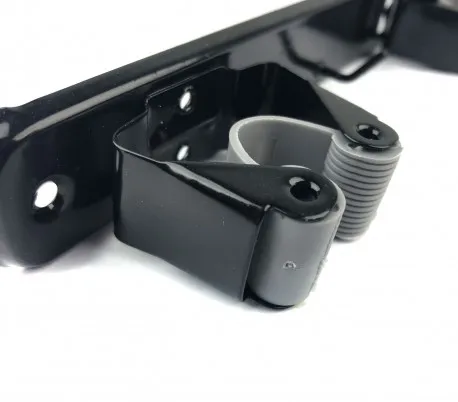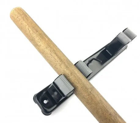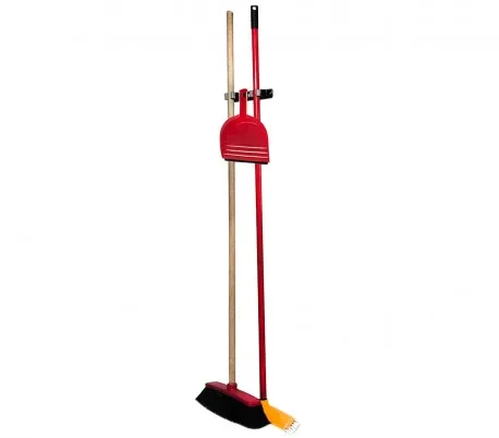 This hanger has 2 broom holes and a central hook to hang a picker.